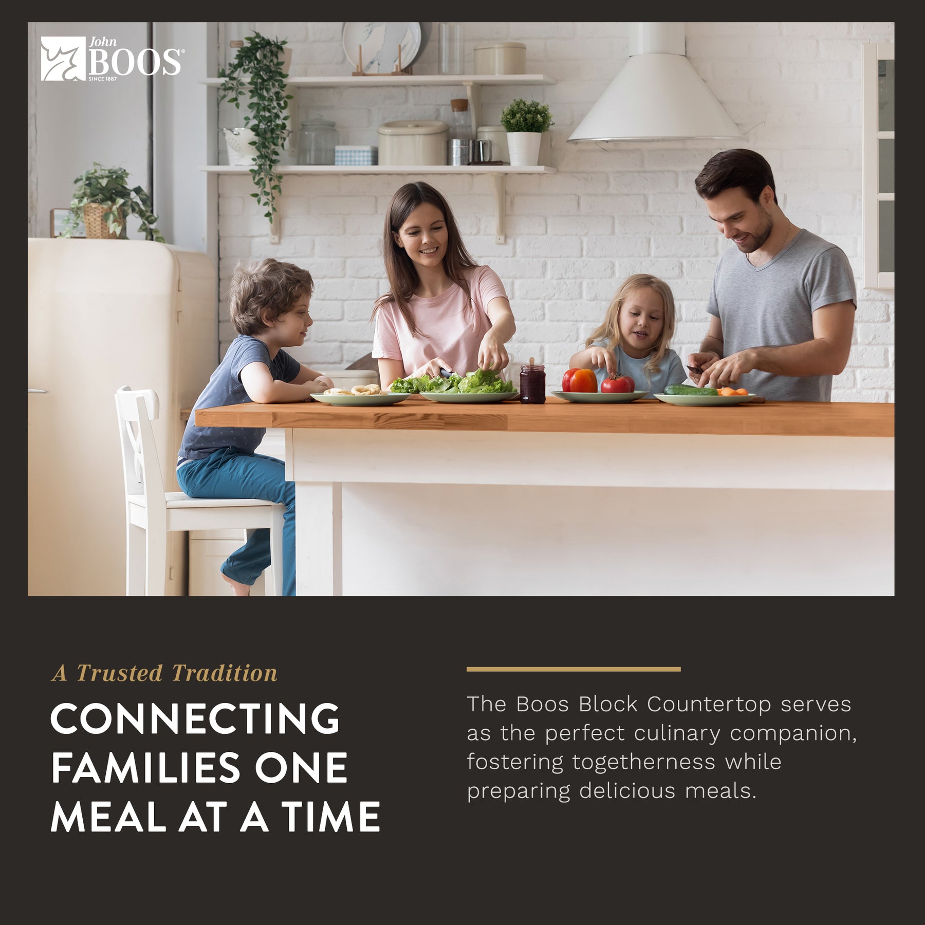 Made in our home and crafted for yours, the John Boos Countertop is a kitchen essential for design enthusiasts, party hosts, home chefs, and culinary professionals. Handcrafted from high-quality wood and made in the USA, this professional cutting board counter is designed with a harmonious blend of heartwood, sap, natural mineral, and grain. Featuring a substantial 1.5-inch thickness, this solid, eased-edge design offers a reliable prep and serving surface for all your culinary needs. The wood counter top is manufactured with random lengths of finger-jointed interior rails for a unique look.