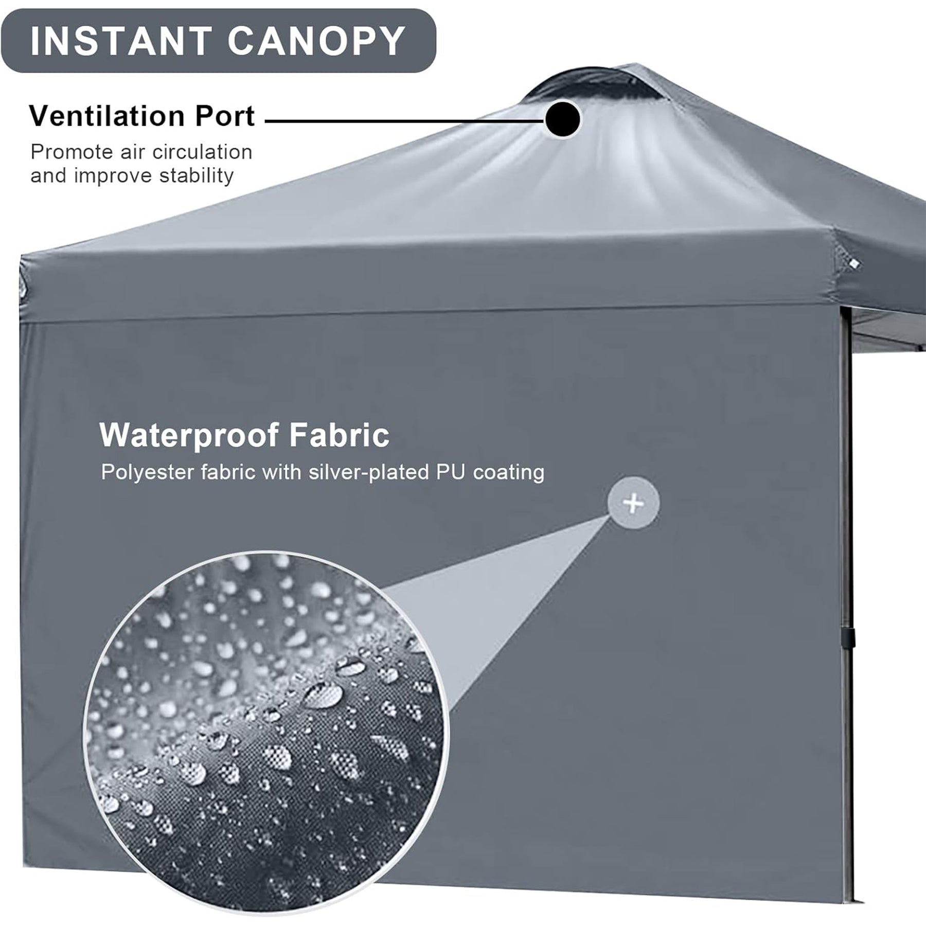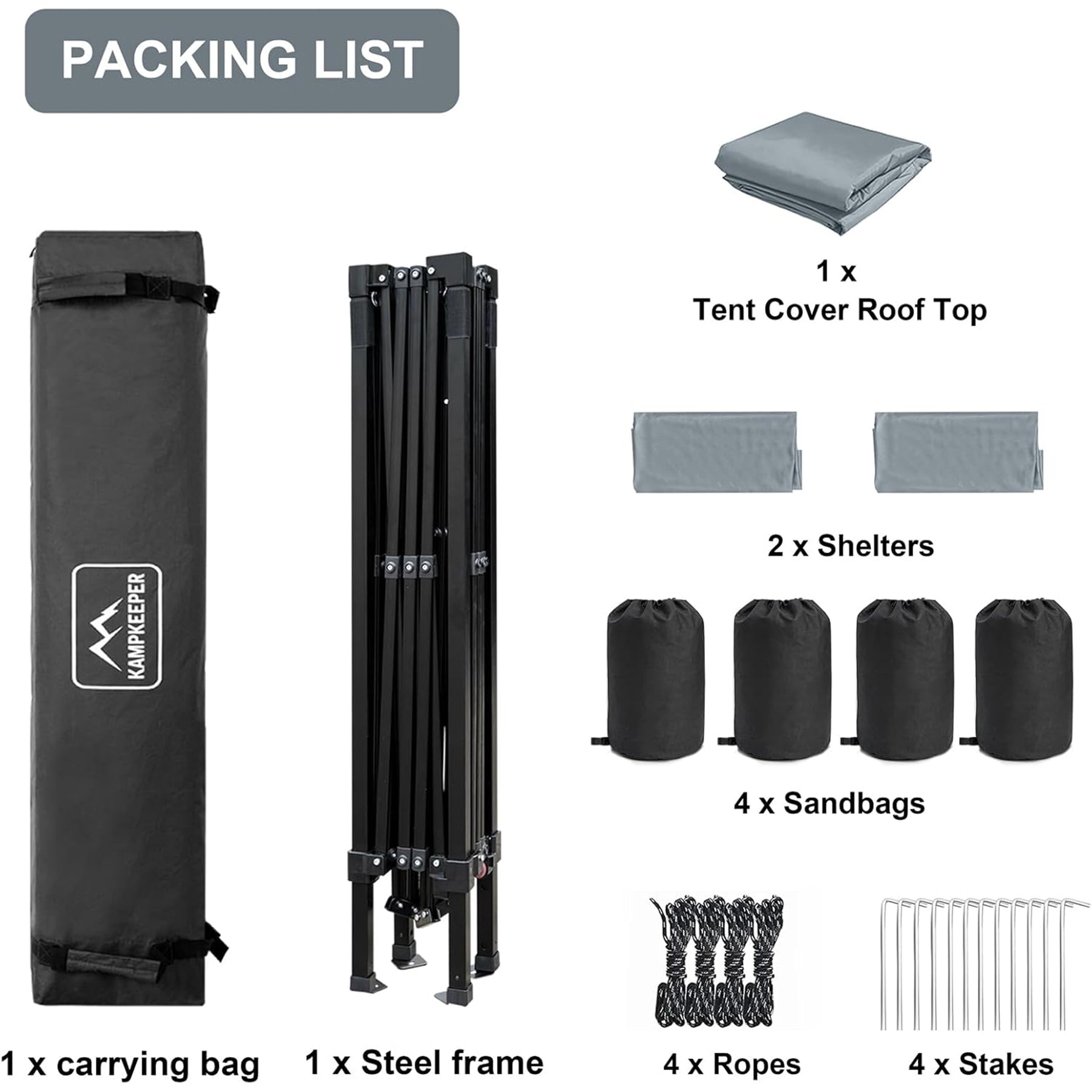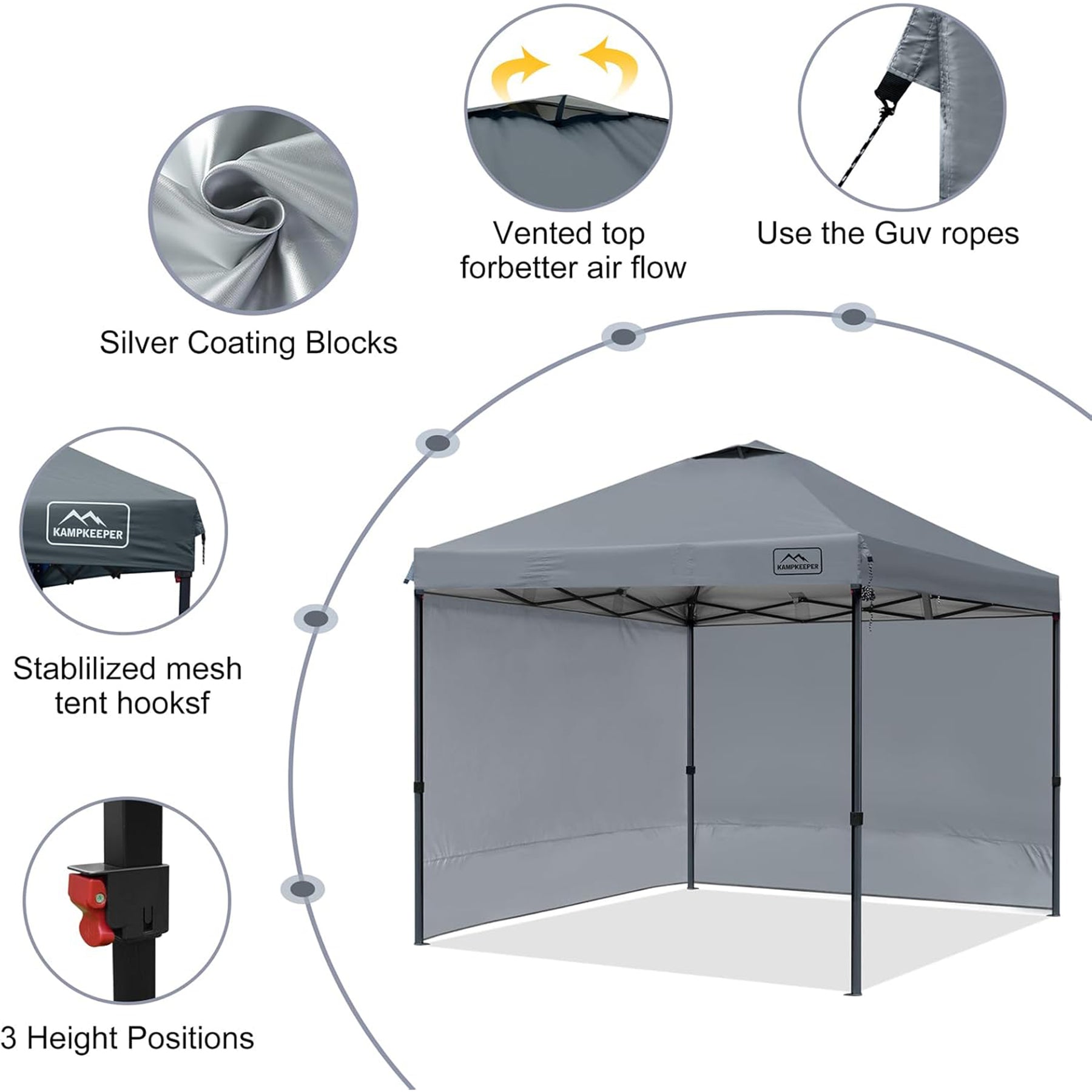 KAMPKEEPER 10x10 Pop Up Canopy Tent with 2 Sidewalls for Outdoor Use, Grey