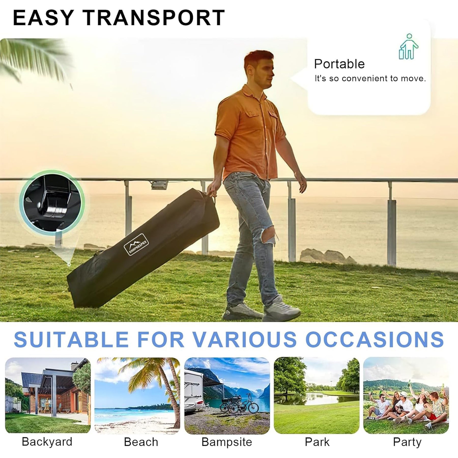 Enjoy reliable shade and comfort wherever your adventures take you with the KAMPKEEPER 10x10 Pop Up Canopy Tent. Designed for camping, beach trips, patio gatherings, picnics, and backyard events, this versatile outdoor shelter creates 100 square feet of coverage and comfortably fits up to 10 seated people.