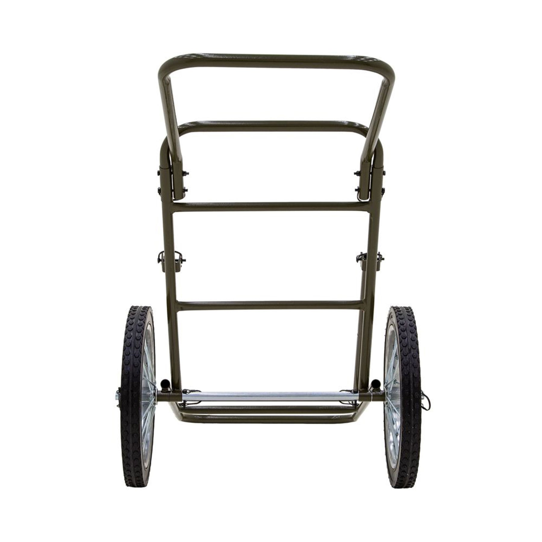 • Heavy-duty game cart is built from brown powder-coated steel for durability