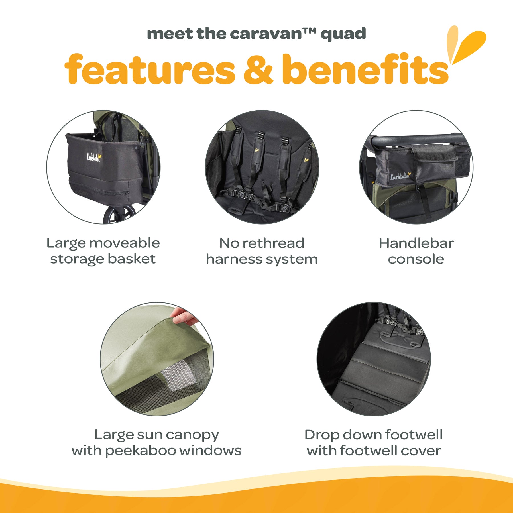 Larktale Caravan Quad Stroller, 4-Seater Wagon, 214 lb Capacity Green (Open Box)