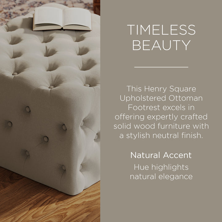- Henry Upholstered Ottoman has a traditional aura with button-tufted detailing and premium fabric upholstery for a timeless, neutral look piece of furniture