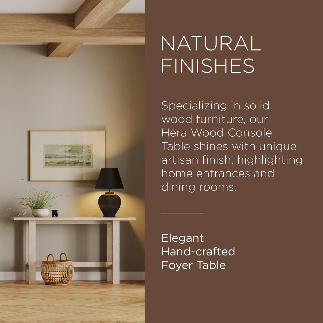 • Solid wood furniture with a neutral finish is a specialty, and this Hera Wood Console Table delivers impeccably well