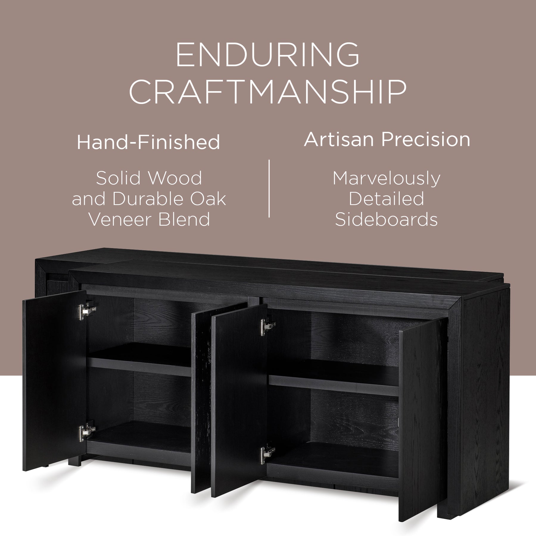 • Our hand-finished furniture is crafted with solid wood, engineered wood, and solid oak veneer, bringing timeless aesthetics with lifetime durability