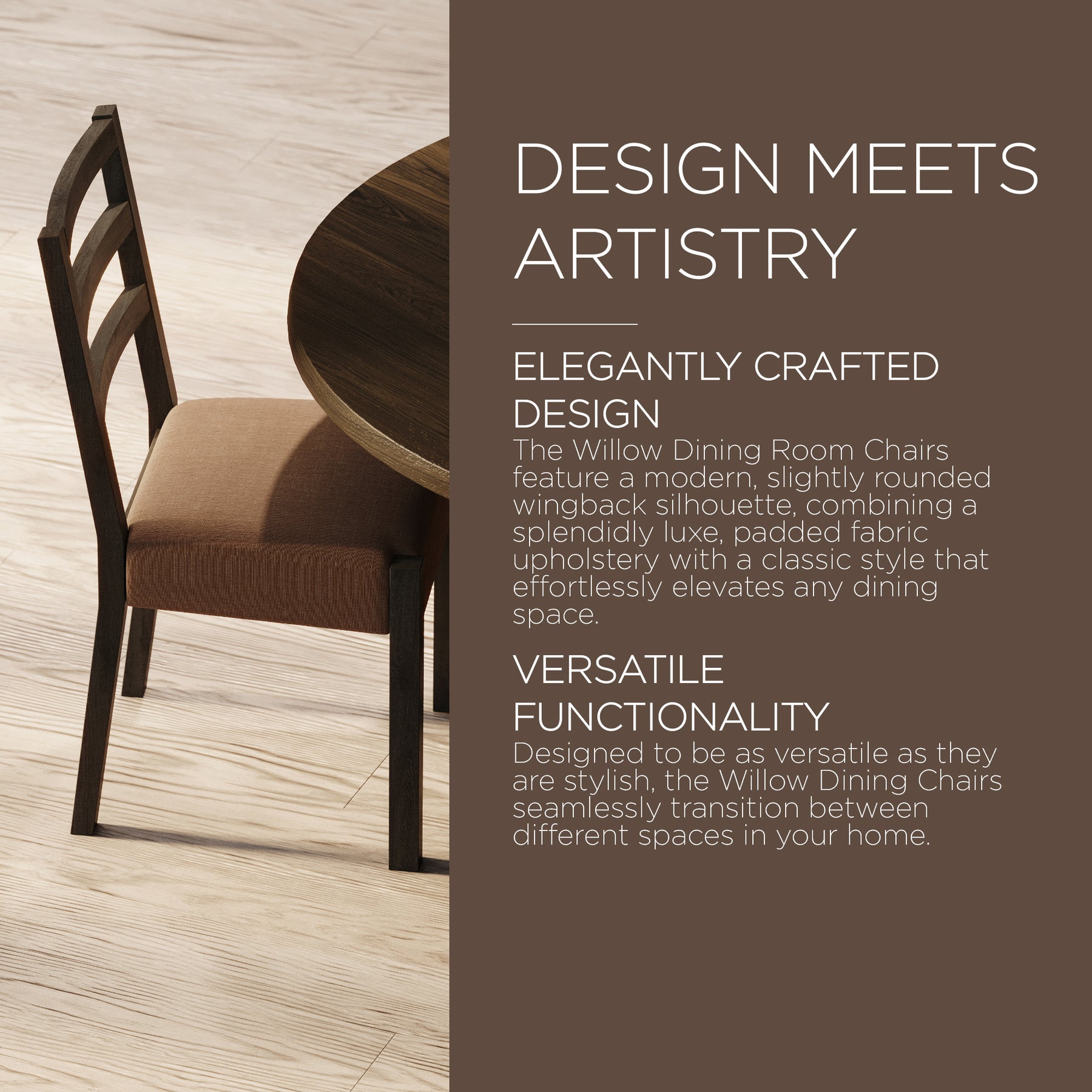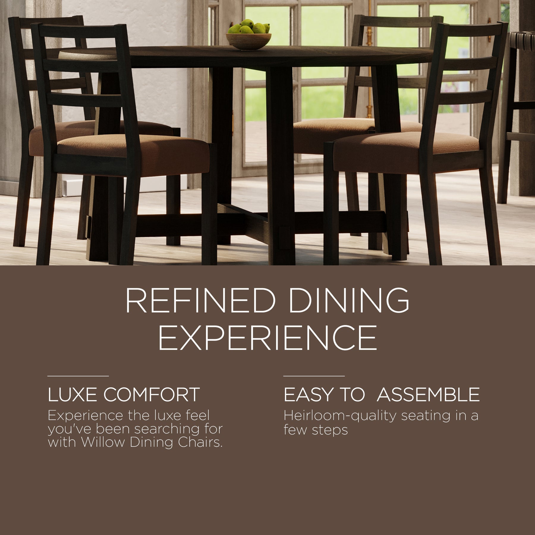 • Willow dining room chairs are just the thing your dining room space needs with a classic, ladder-back design, plush seating, and finished in premium fabric upholstery