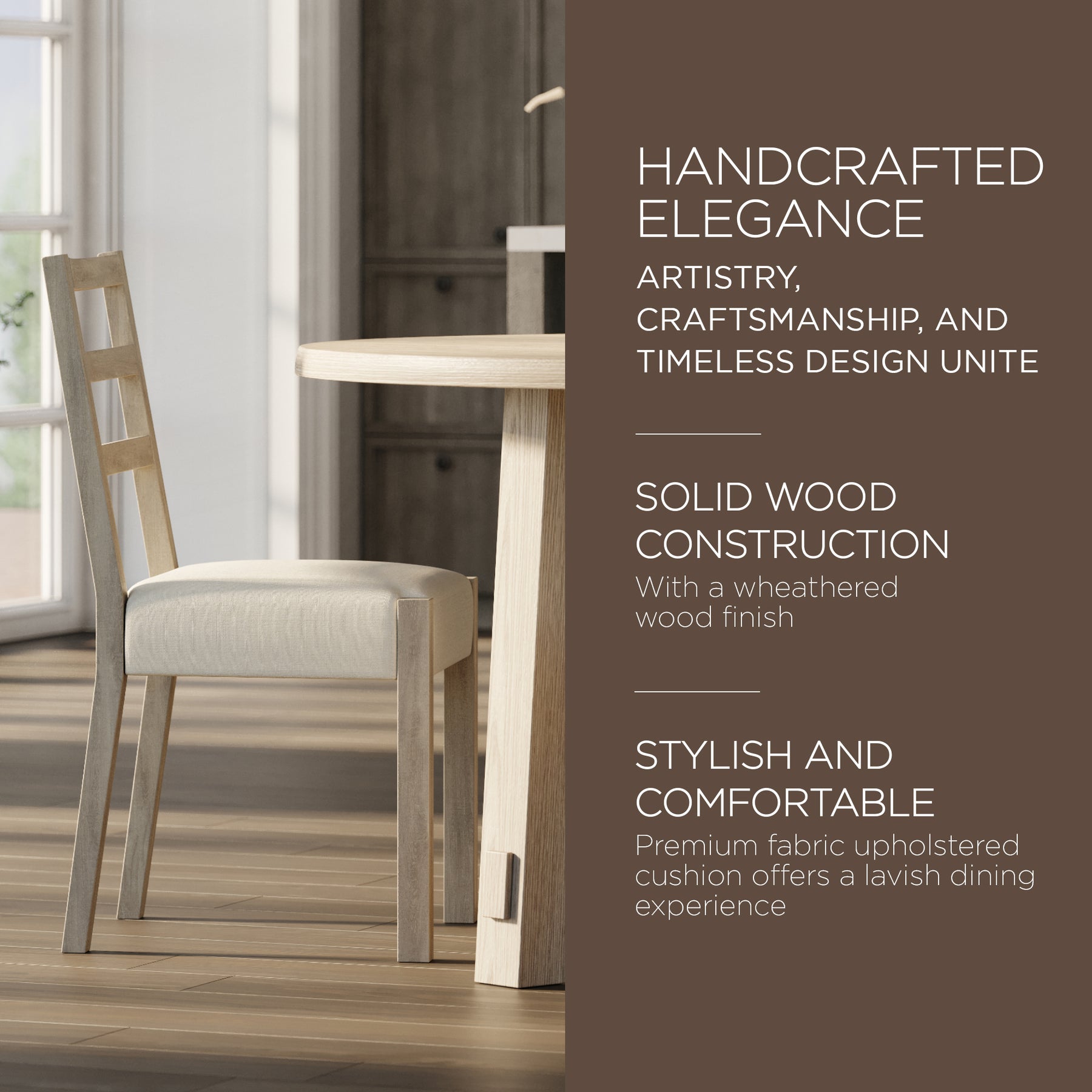 • Color: Weathered White, Cream Weave Fabric Upholstery