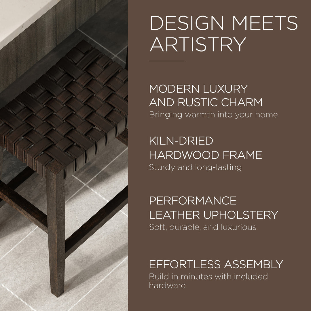 • Wooden bar stools mix woven strips of PU leather with solid wood, lending an organic feeling to your dining space