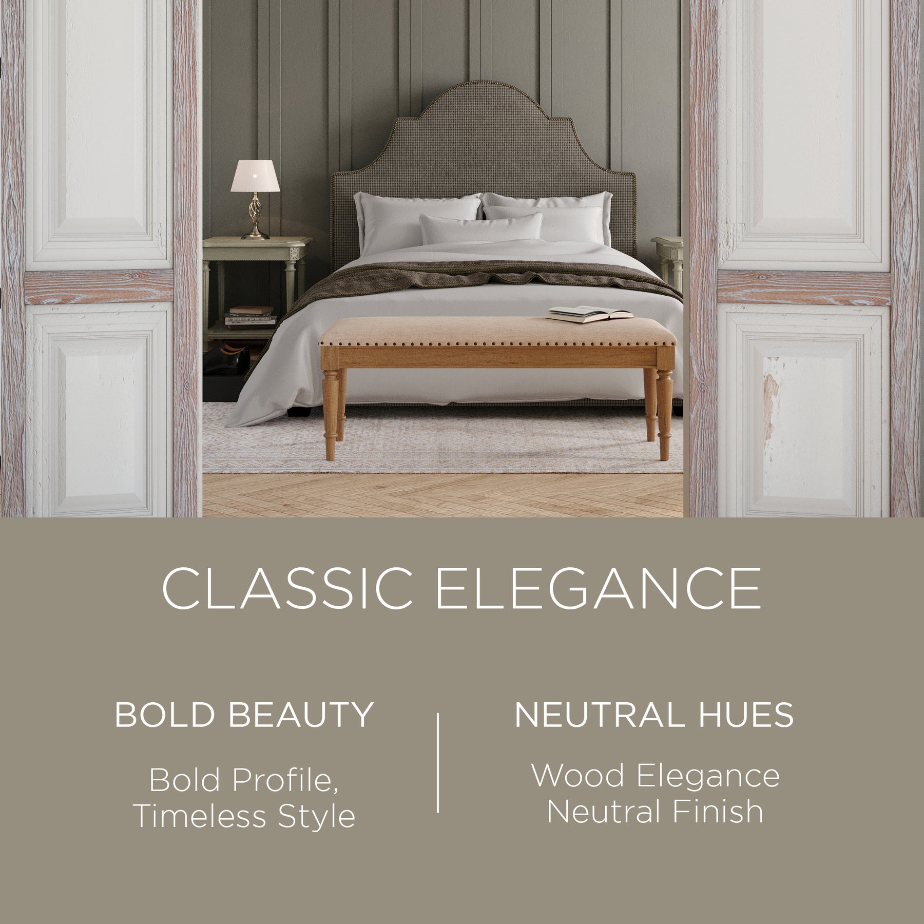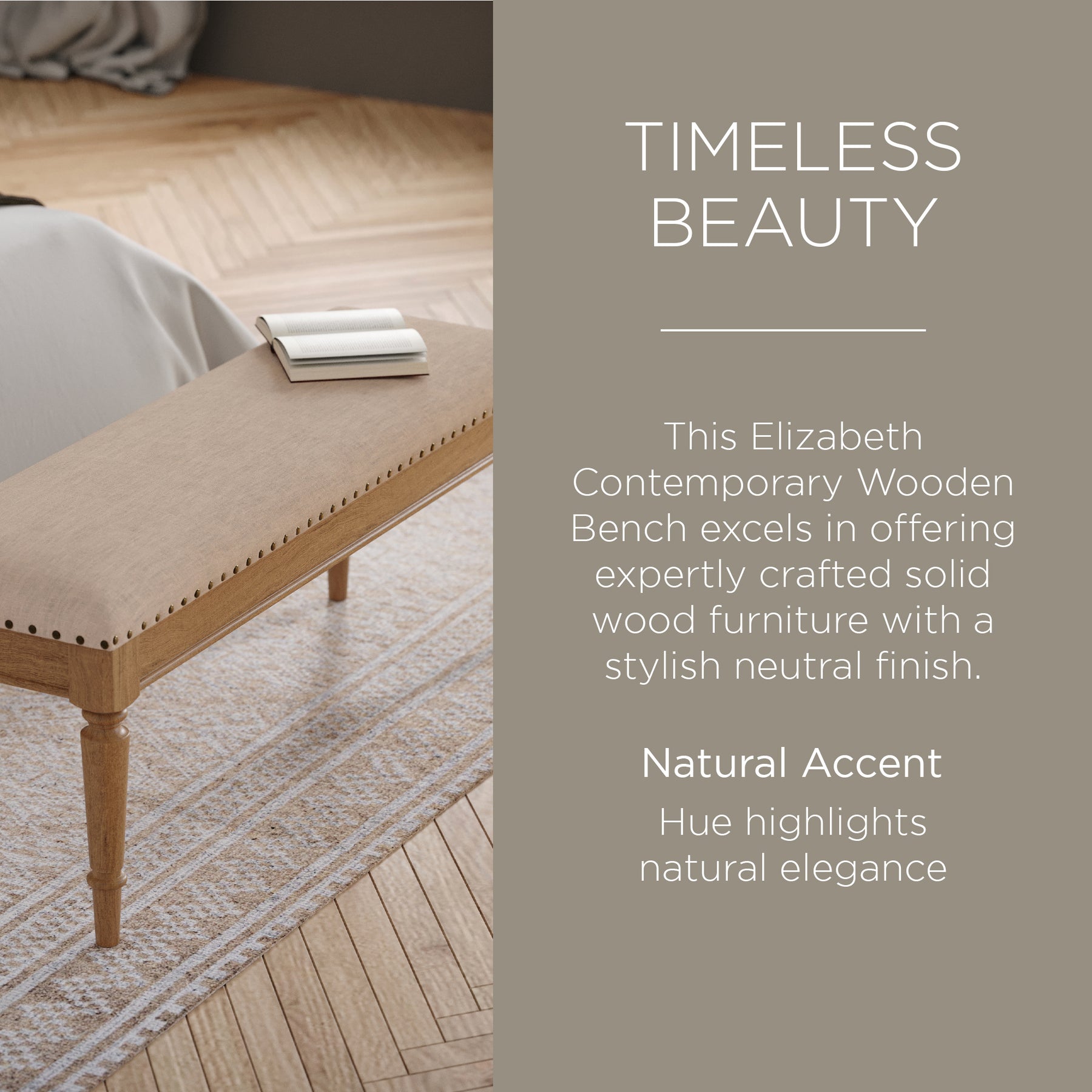 - Solid wood furniture with a neutral finish is our specialty, and this Elizabeth Wood Bench delivers this hue impeccably well