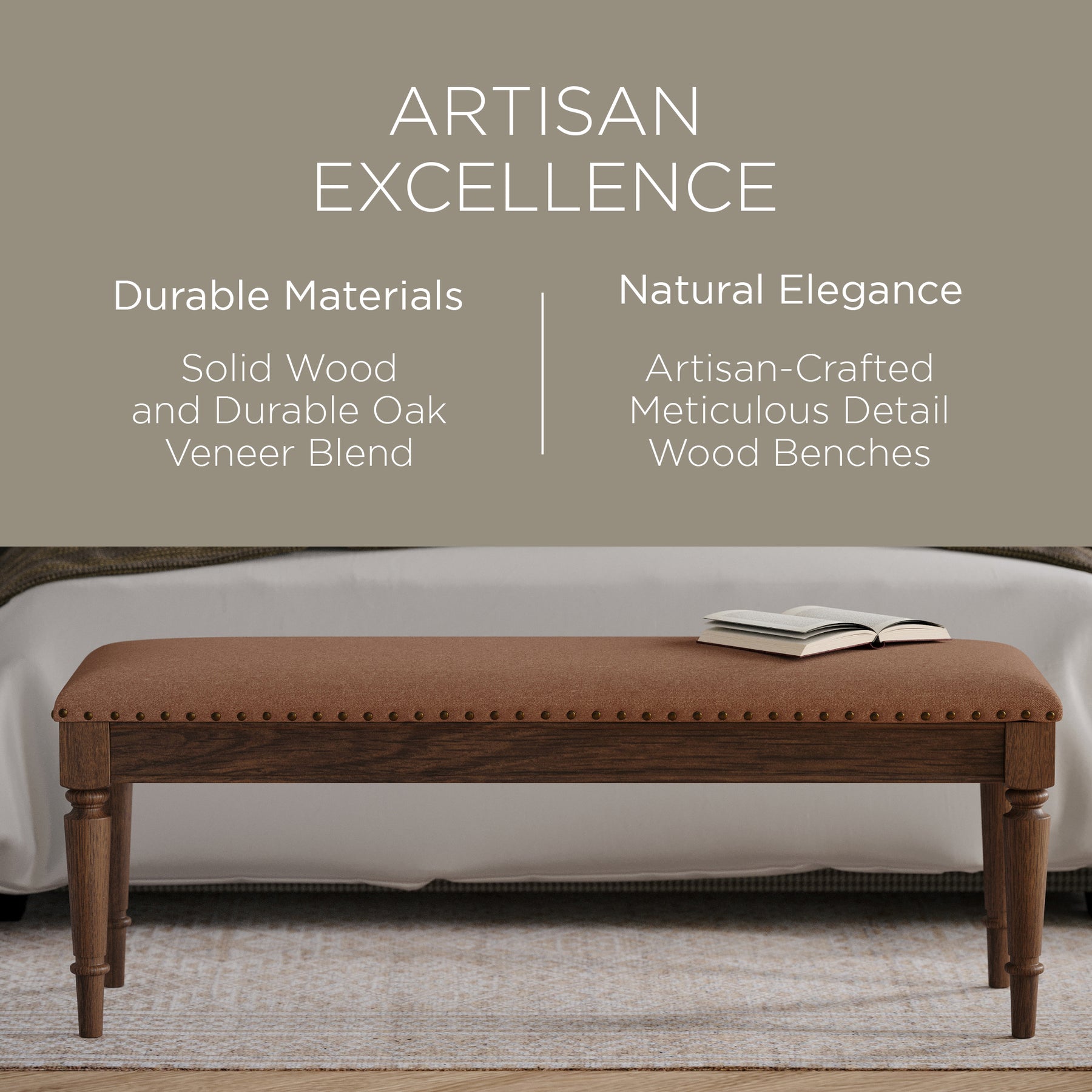 • Solid wood furniture with a neutral finish is our specialty, and this Elizabeth Wood Bench delivers this hue impeccably well