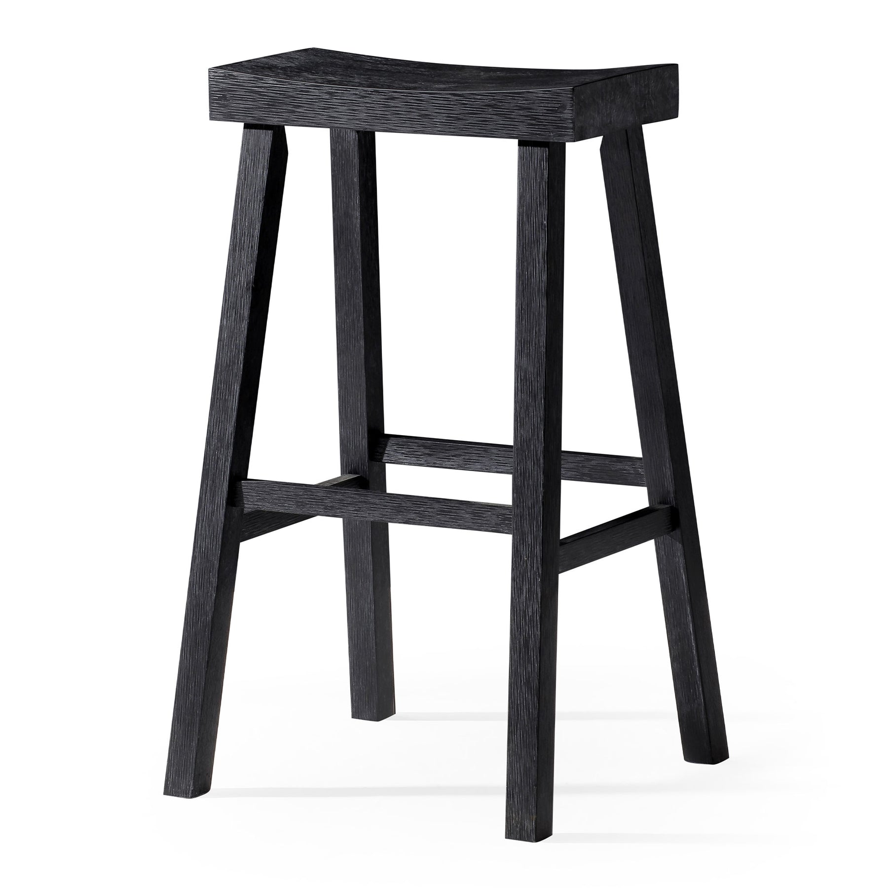- With a hand-brushed wood finish in a rich, antiqued black stain, these wooden barstools offer a dark and moody hue you’ll adore and exactly the kind of drama your dining space has been seeking