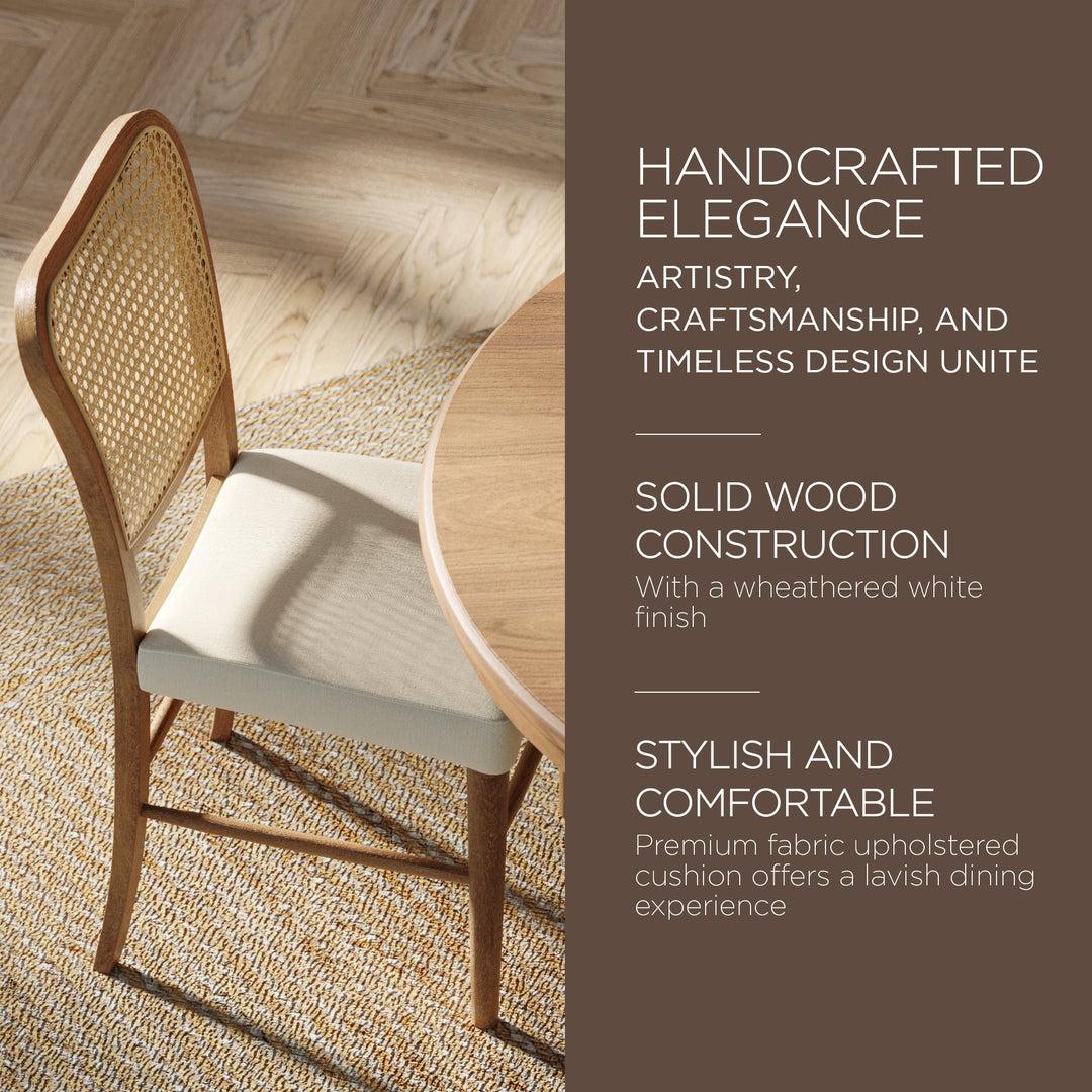 - Vera Dining Room Chairs offer organic vibes and neutral splendor to complete your dining room vision with a beautiful caned back, naturally finished wood frame, plush seating, and polished premium fabric upholstery