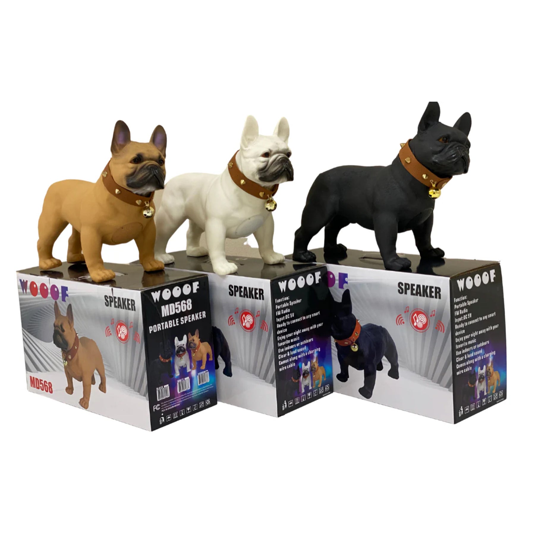 • Eye-catching French bulldog style speaker with collar detail that doubles as home décor and a fun, gift-ready portable audio companion
