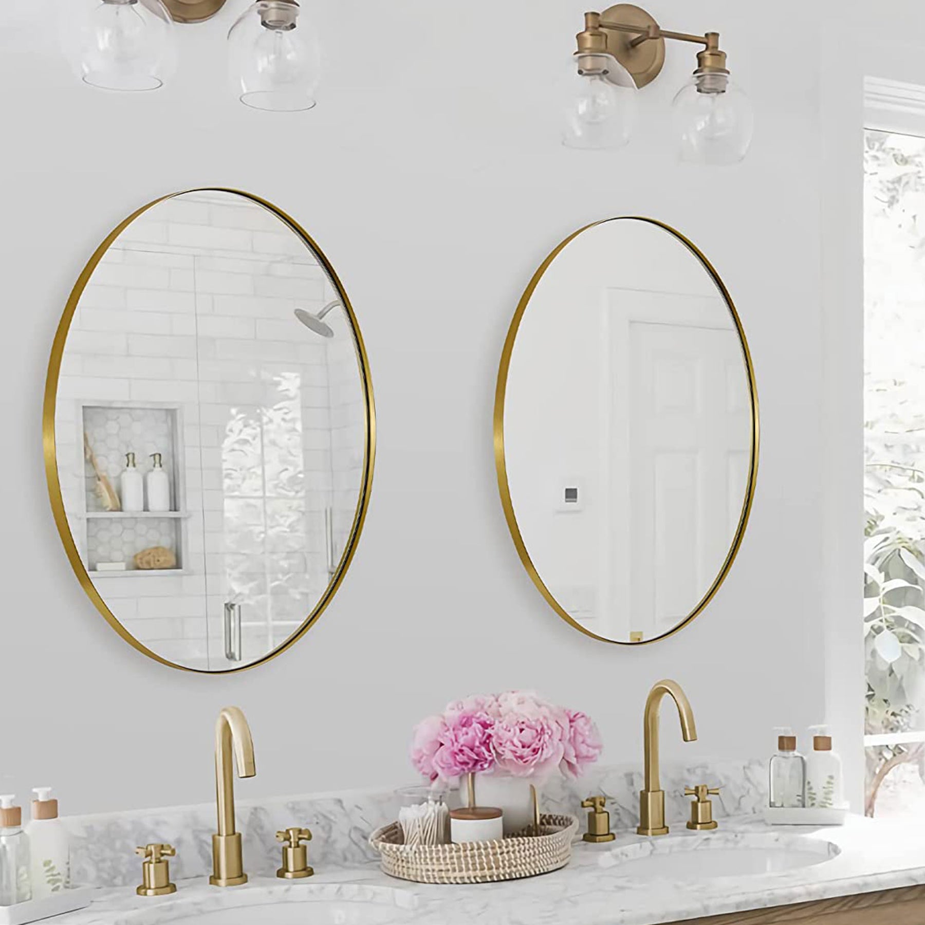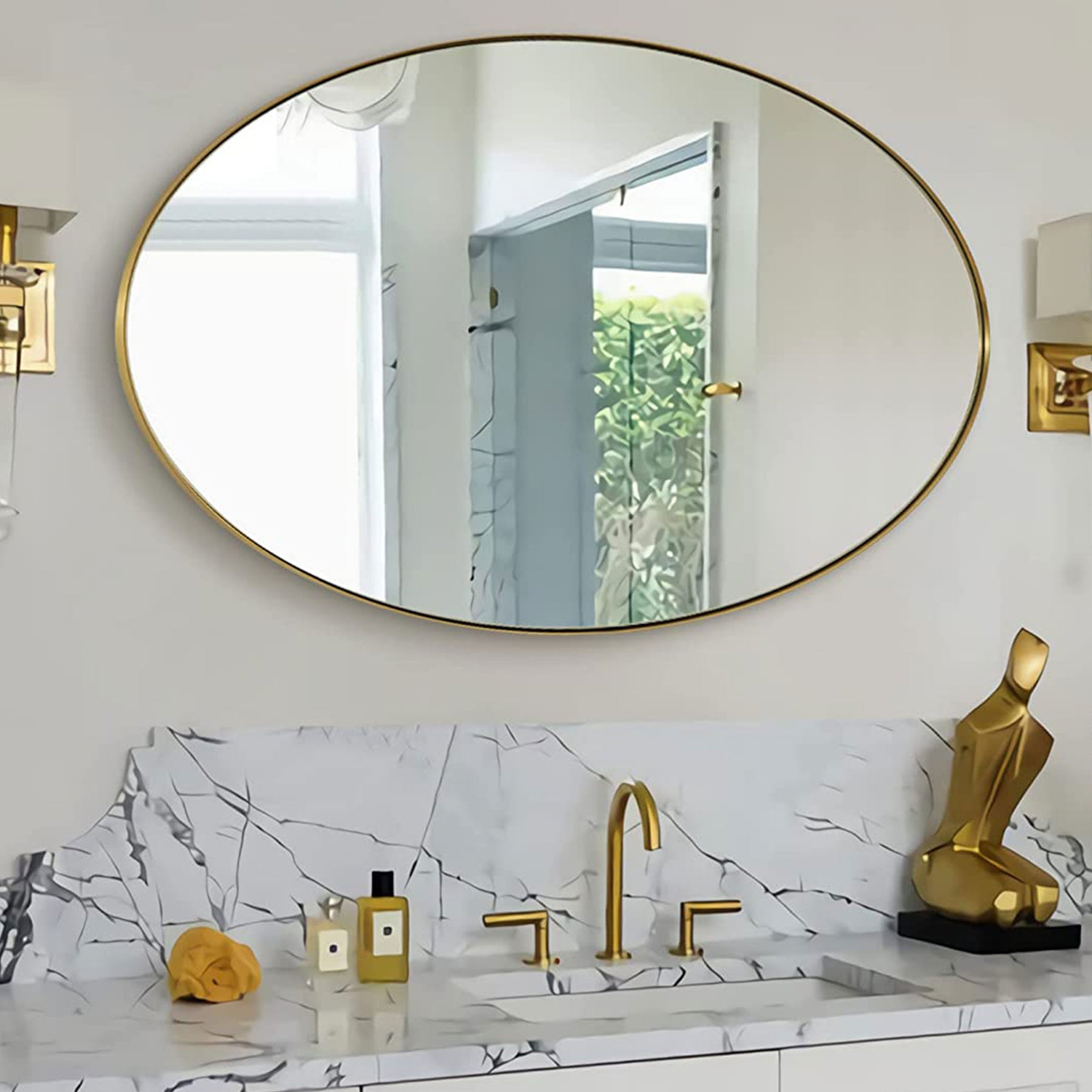 ANDY STAR Modern 20x28" Oval Wall Hanging Bathroom Vanity Mirror, Gold(Open Box)