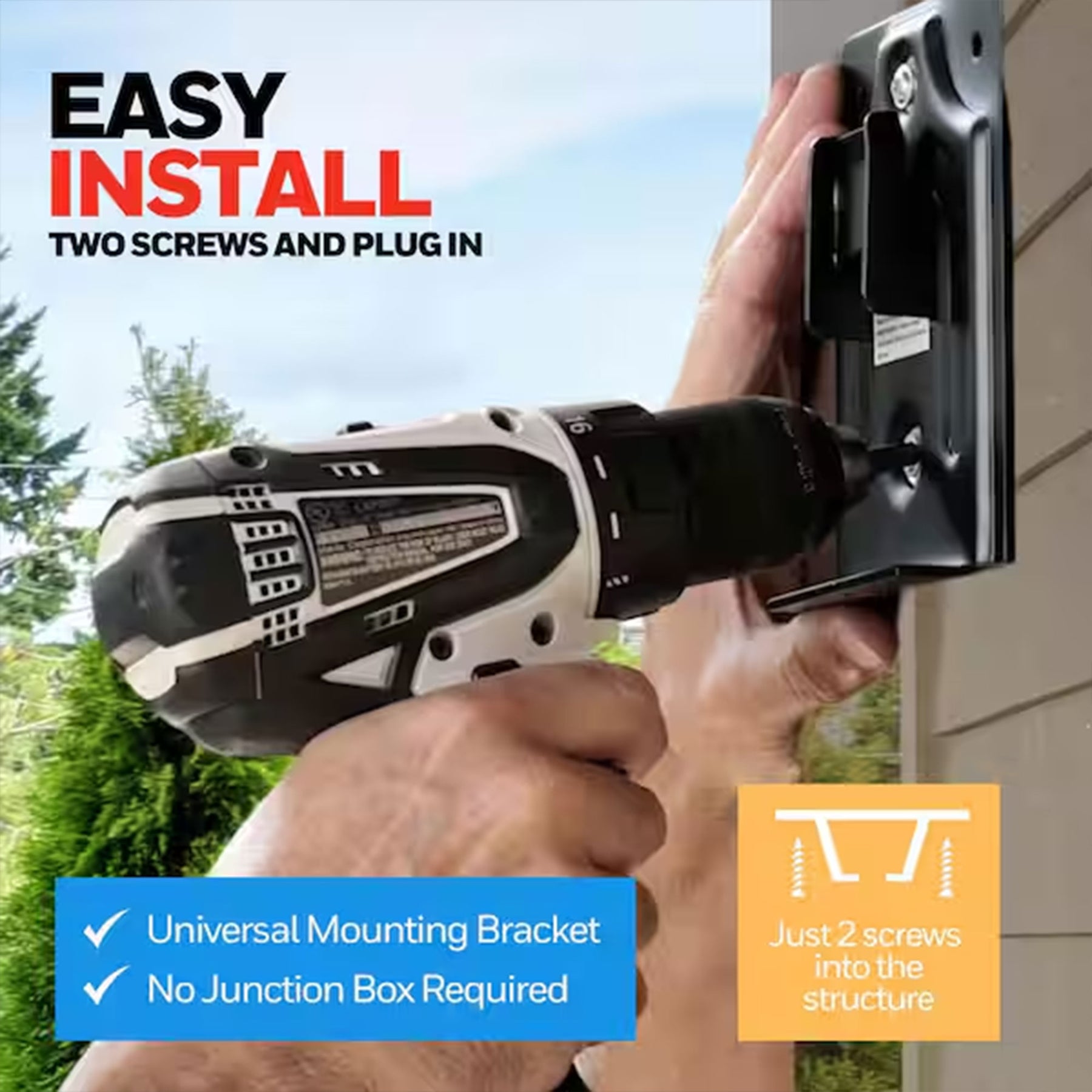 • Standard 3-prong plug; 2 screws mount to post or wall stud to effortlessly connect to any outlet