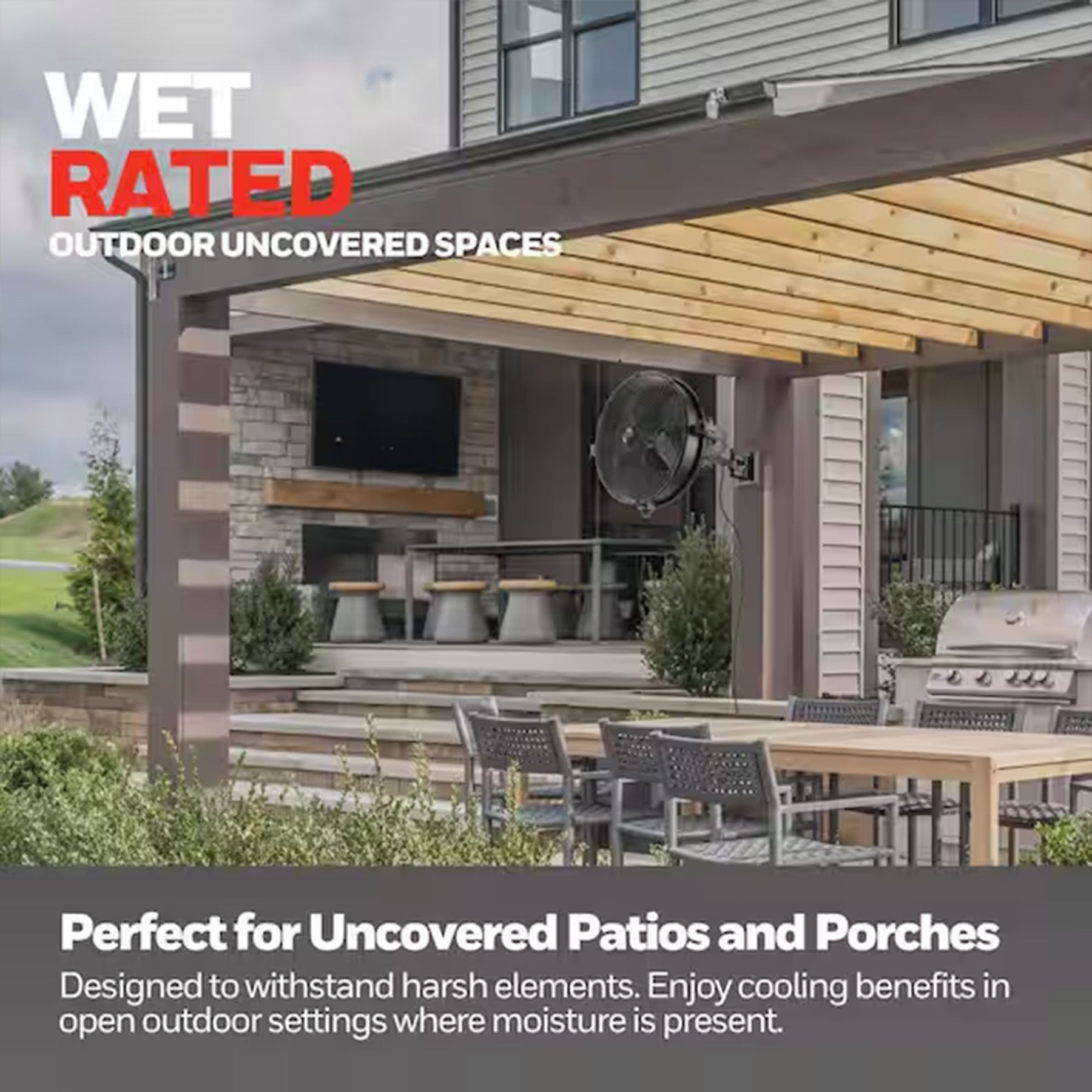 Mule Outdoor 18" Fan, Omni-Reach Extended Wall Mount, 300-Degree Swivel, 53031