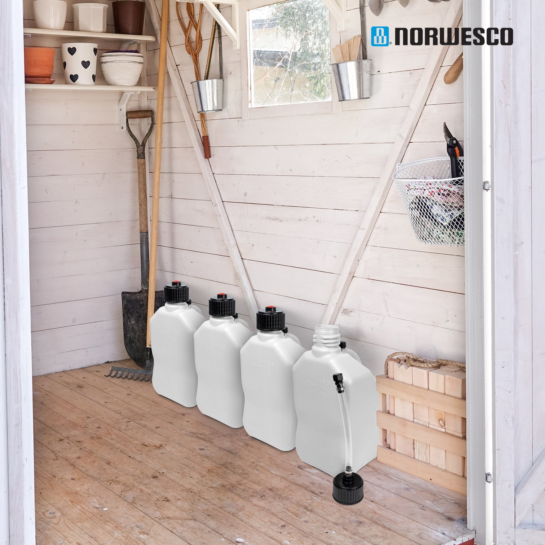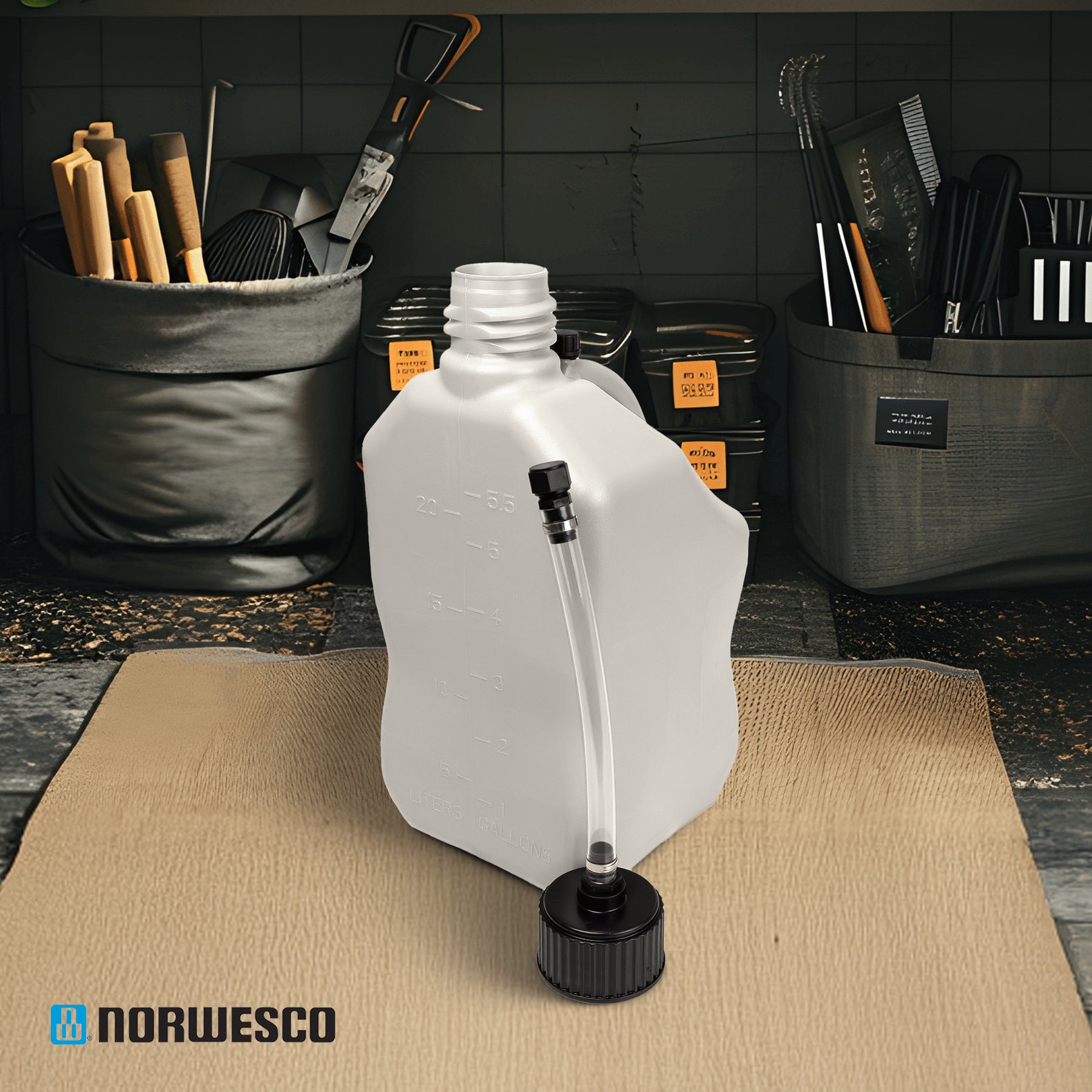 Pour effortlessly with the high-volume, non-clog spout and included hose, making refills and transfers quick and spill-free. The built-in ergonomic handle ensures comfortable carrying and precise pouring, even with a full 5.5-gallon capacity. Perfect for dry or liquid storage, these jugs can handle a wide range of uses, from storing water for camping and outdoor activities to containing automotive fluids, absorbents, or ice melt. Their secure caps prevent leaks, so you can transport them confidently, no matter the task.