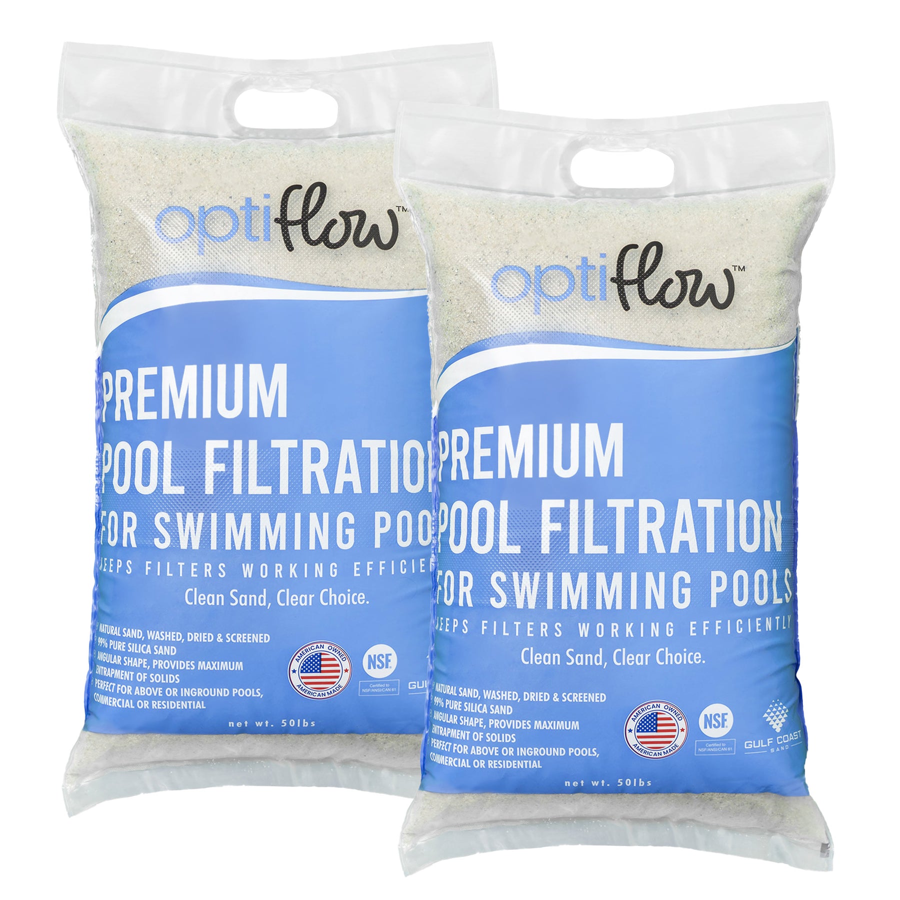 - OptiFlow's pure silica filtration sand formula ensures exceptional water clarity by effectively capturing dirt, debris, and other impurities, keeping your pool pristine
