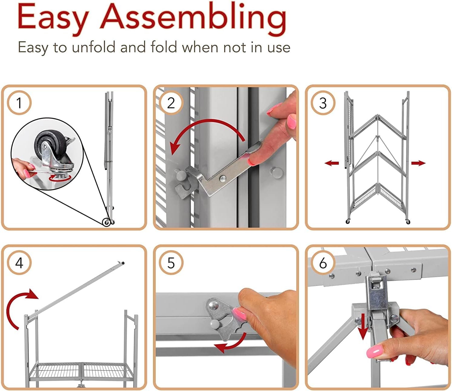 • Features 4 wheels for enhanced portability, effortlessly move the rack from room to room, indoors or outdoors, to meet your storage needs wherever they arise