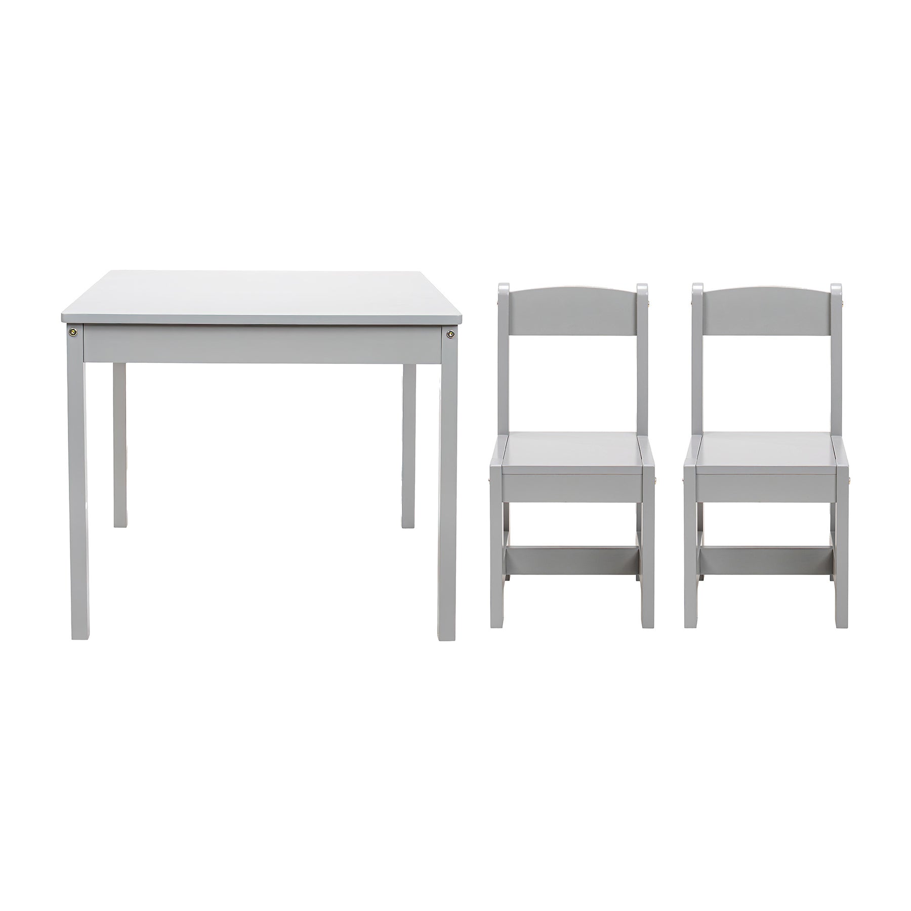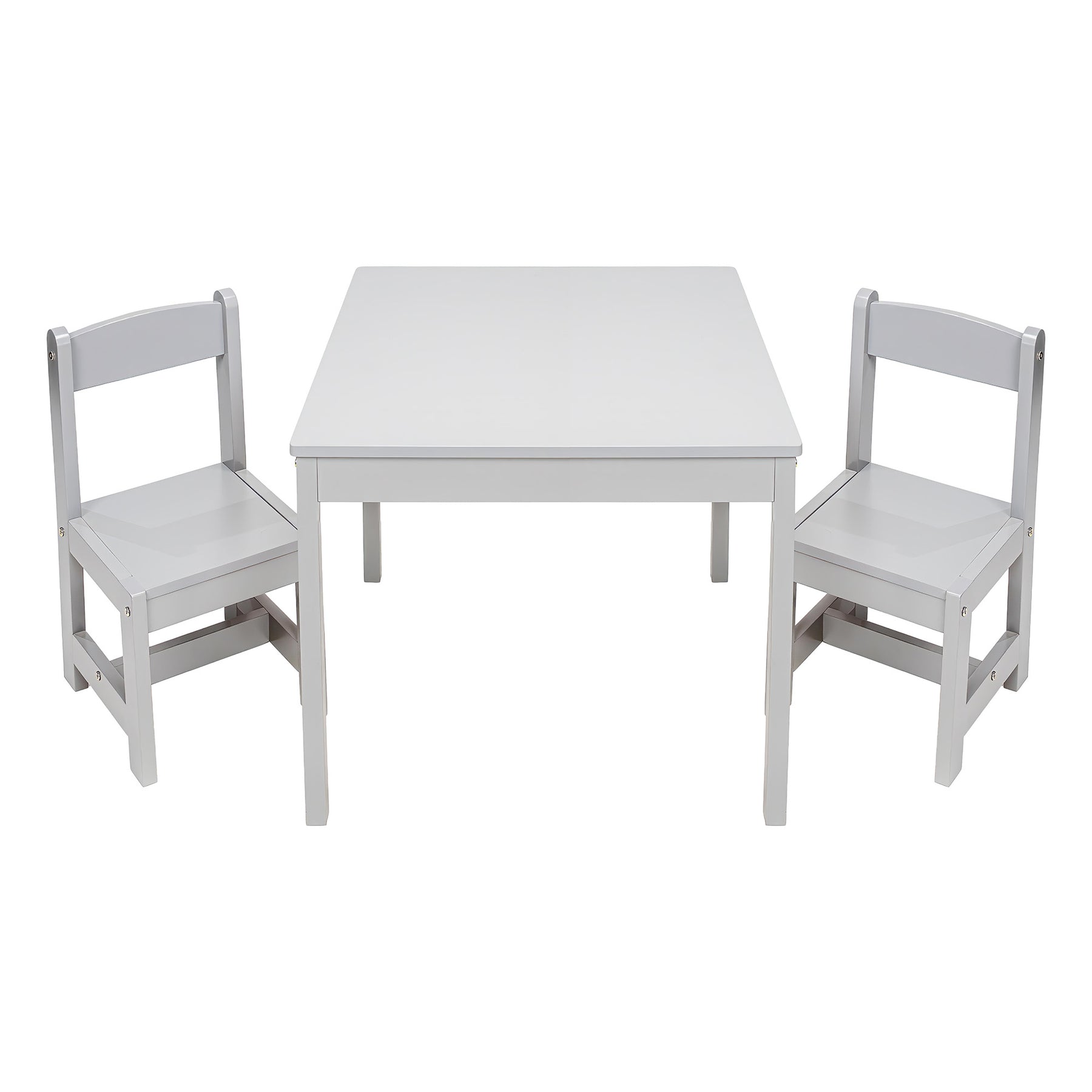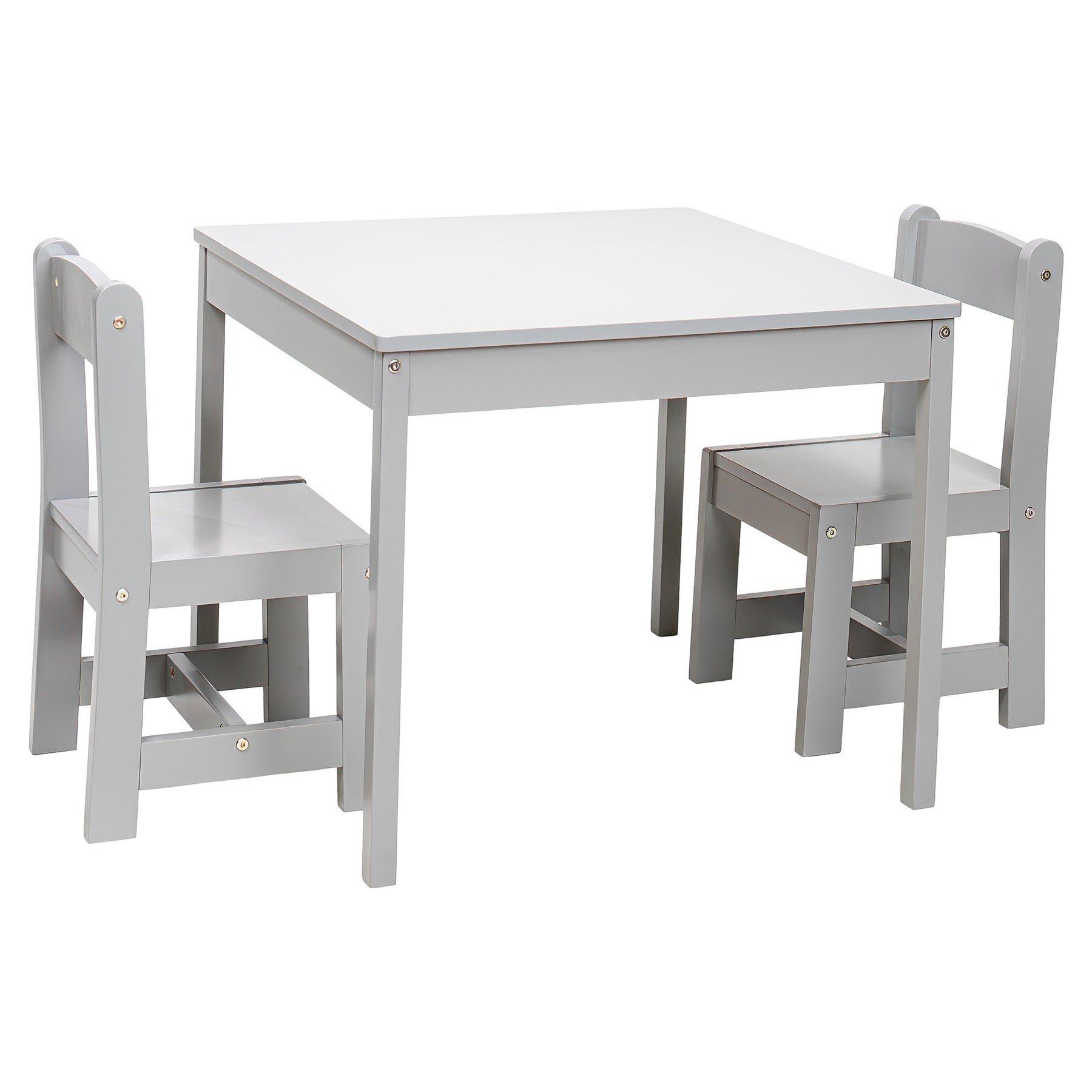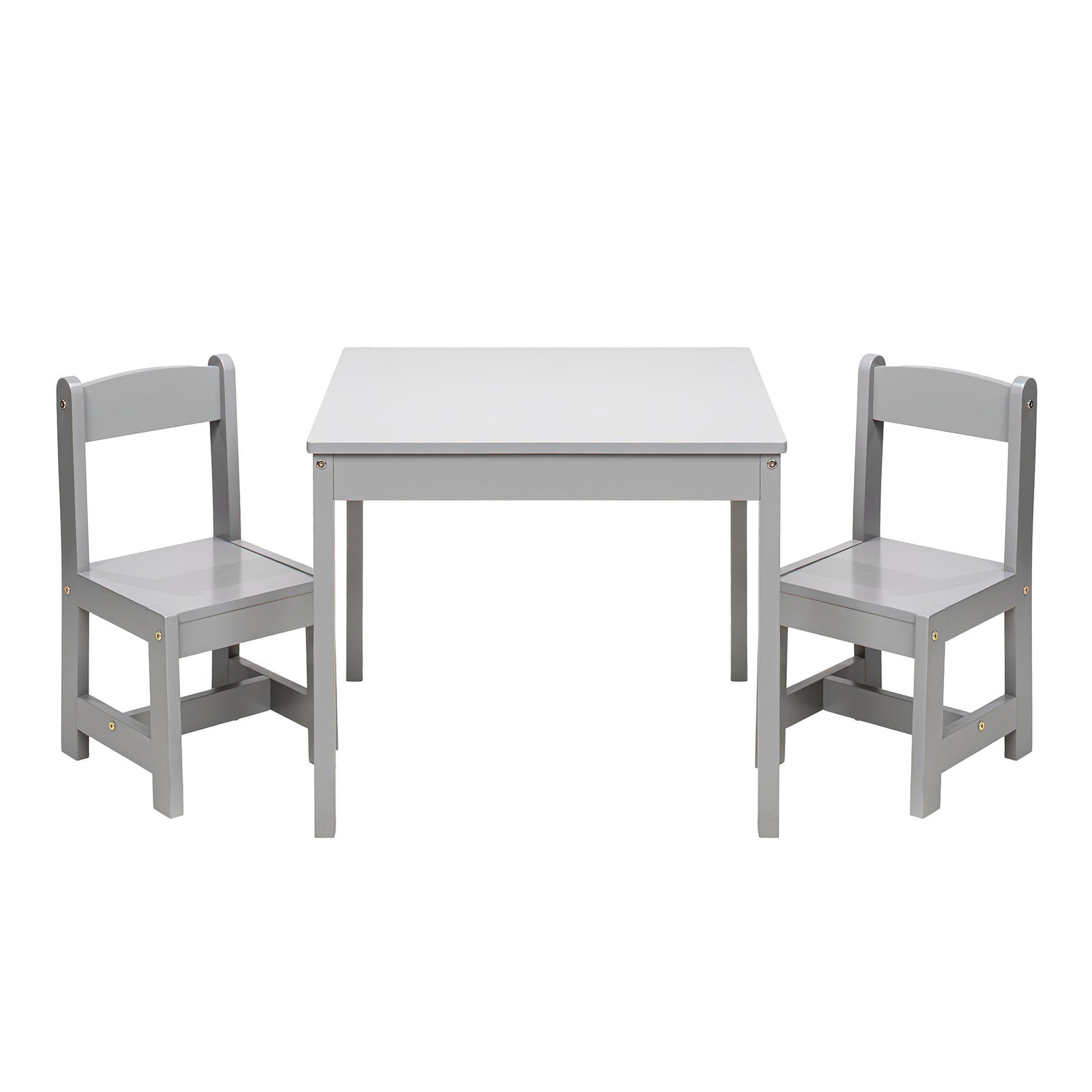 PJ Wood Children's Table and 2 Chairs Set for Kids Ages 1-5 Years Old, Grey
