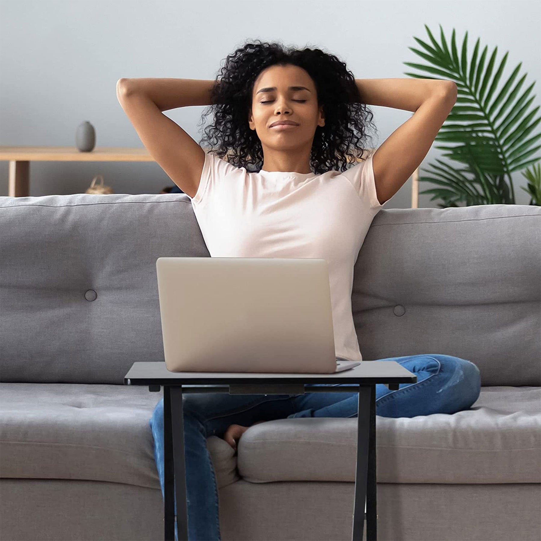 • Each sofa snack table measures 14.57 inches wide, 19.09 inches long, and 26.00 inches tall, and contains a spacious, flat surface