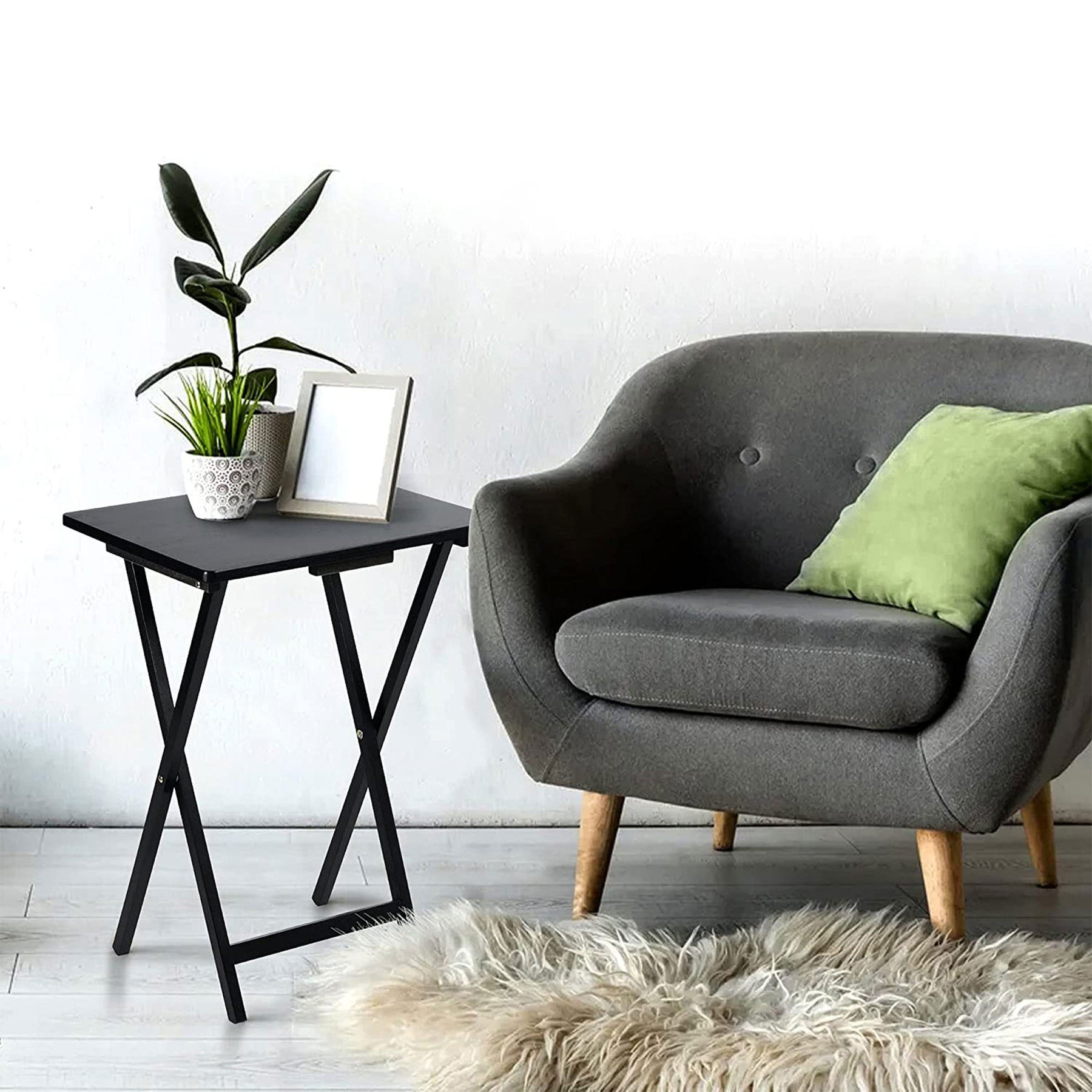 PJ Wood Folding TV Tray Tables with Compact Storage Rack, Black, 5pc (Open Box)