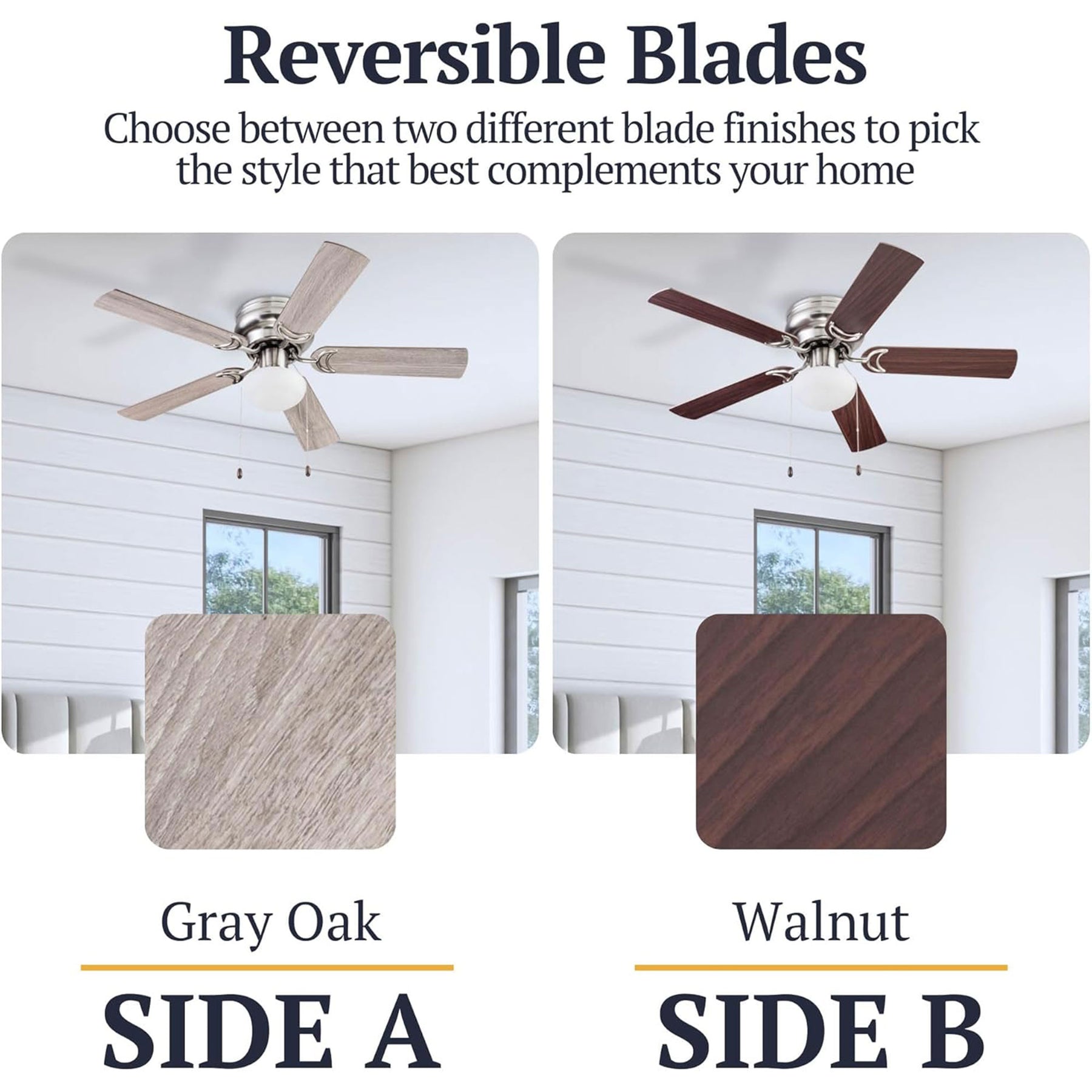 - 5 dual-finish blades in Gray Oak and Brown Walnut for versatile styling that complements both modern and traditional décor