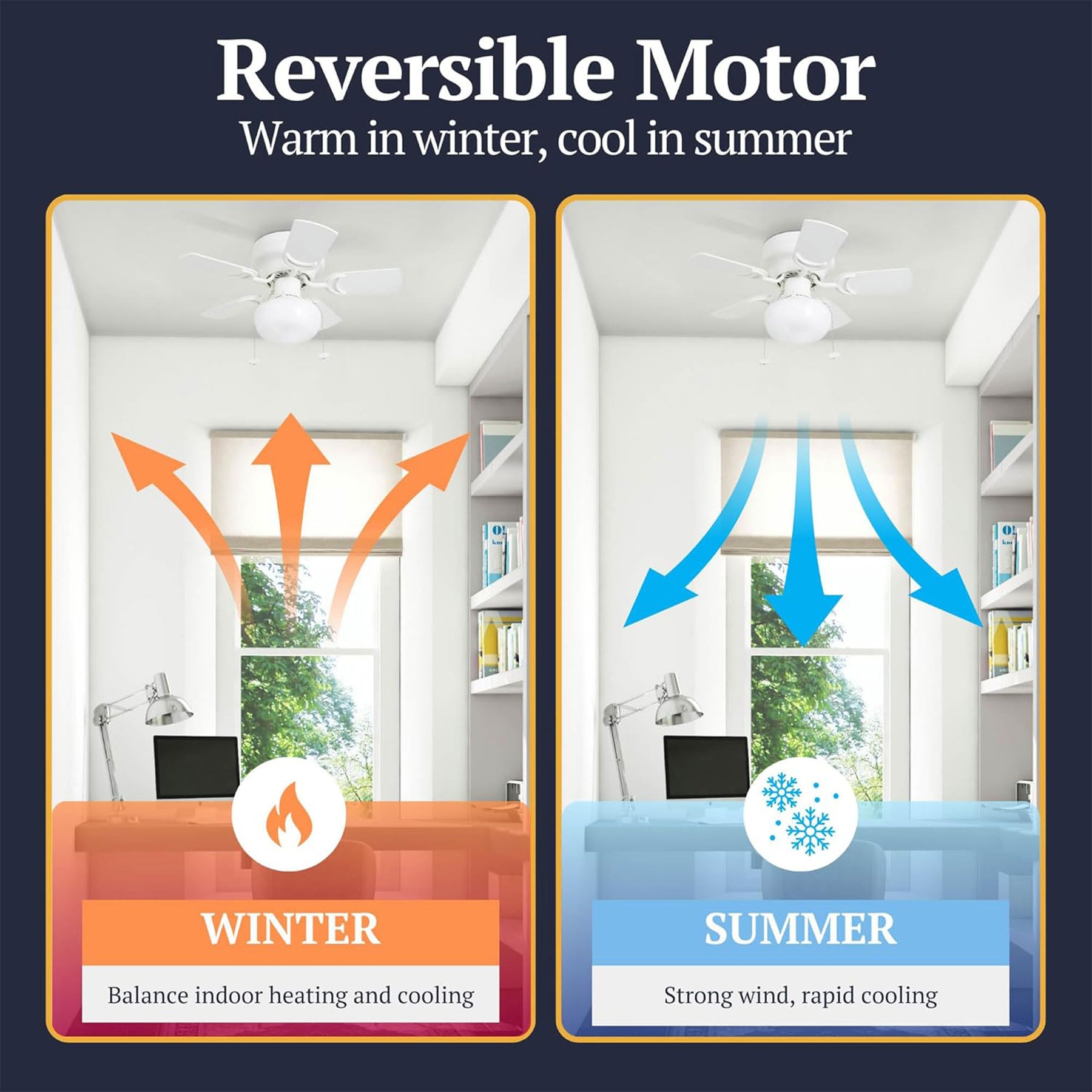 • Mini hugger ceiling fan features sleek finish and 5 dual finish, reversible fan blades