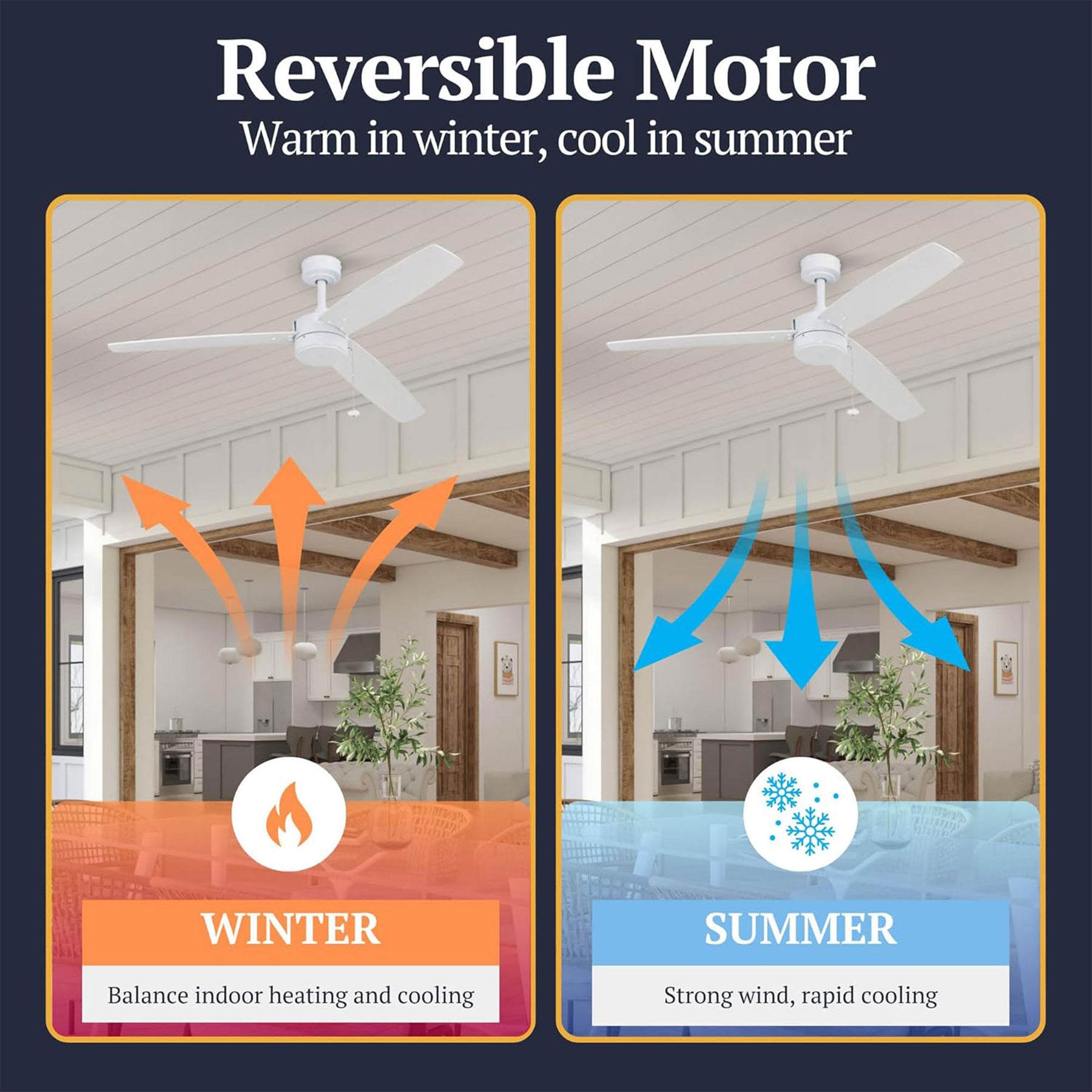 • Engineered with a powerful reversible motor to cool in summer and circulate warm air in winter for balanced comfort all year
