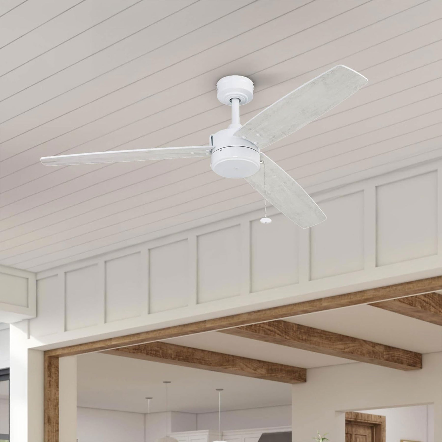 • Includes 3 dual-finish blades in White and White Barnwood that blend effortlessly with any decor style