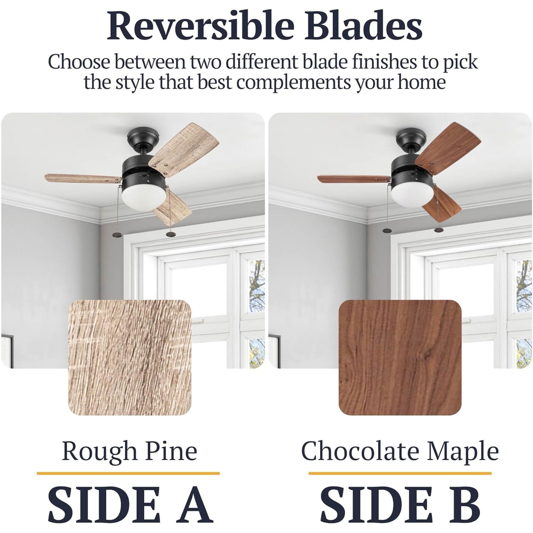 • 3 dual-finish reversible blades in Rough Pine and Chocolate Maple to complement both modern and farmhouse décor styles