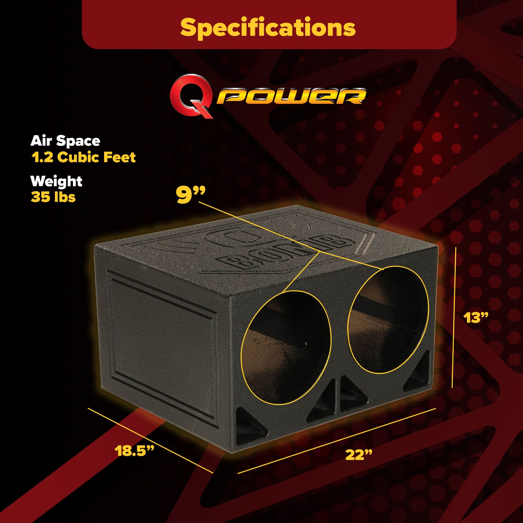 Q Power Dual 10 Inch Triangle Ported Subwoofer Box w/ Bedliner Spray (Open Box)