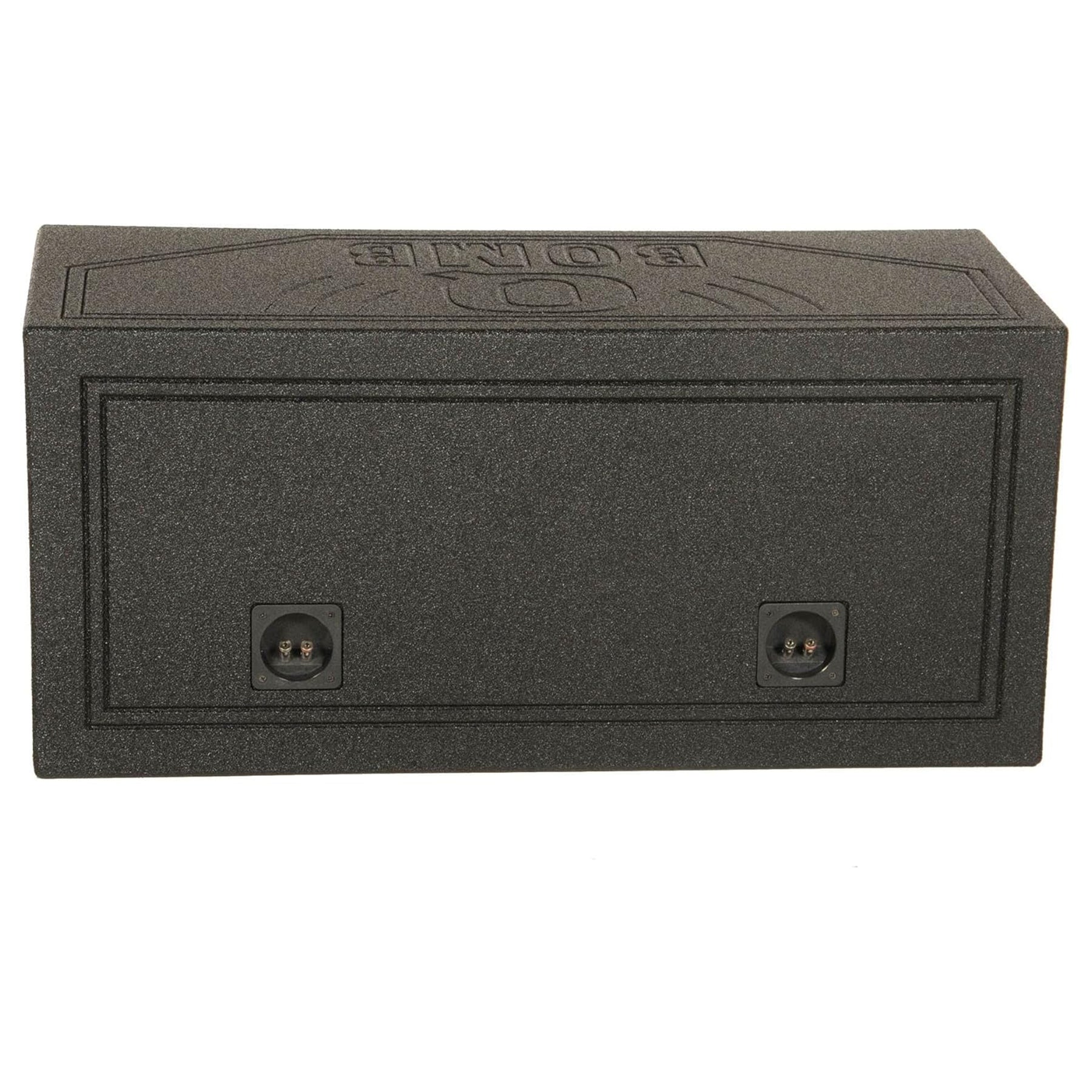 This sealed sub box is constructed with 0.75 inch MDF and finished with a black bedliner spray for increased durability and added style. It features high quality spring loaded terminals, a mounting depth of 10 inches, and 1.22 cubic feet of air space per subwoofer.