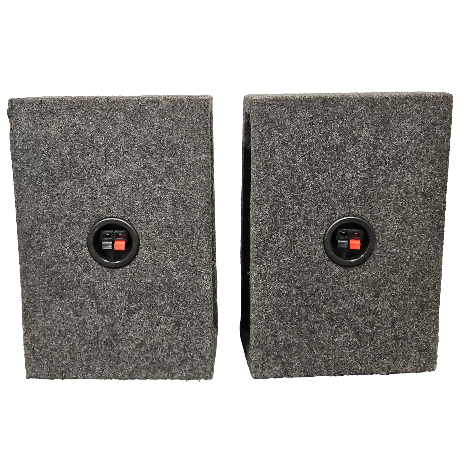 The exterior is wrapped in a trunk carpet, giving the enclosure a protective layer that fits naturally into most vehicle interiors. Nickel-plated spring terminals ensure direct and dependable wiring, eliminating the frustration of exotic connectors or complex installation steps. Every pair arrives prewired and ready with terminal cups, mounting screws, and baffle materials, making installation straightforward whether you're adding speakers to a daily driver, weekend project, or truck cab.
