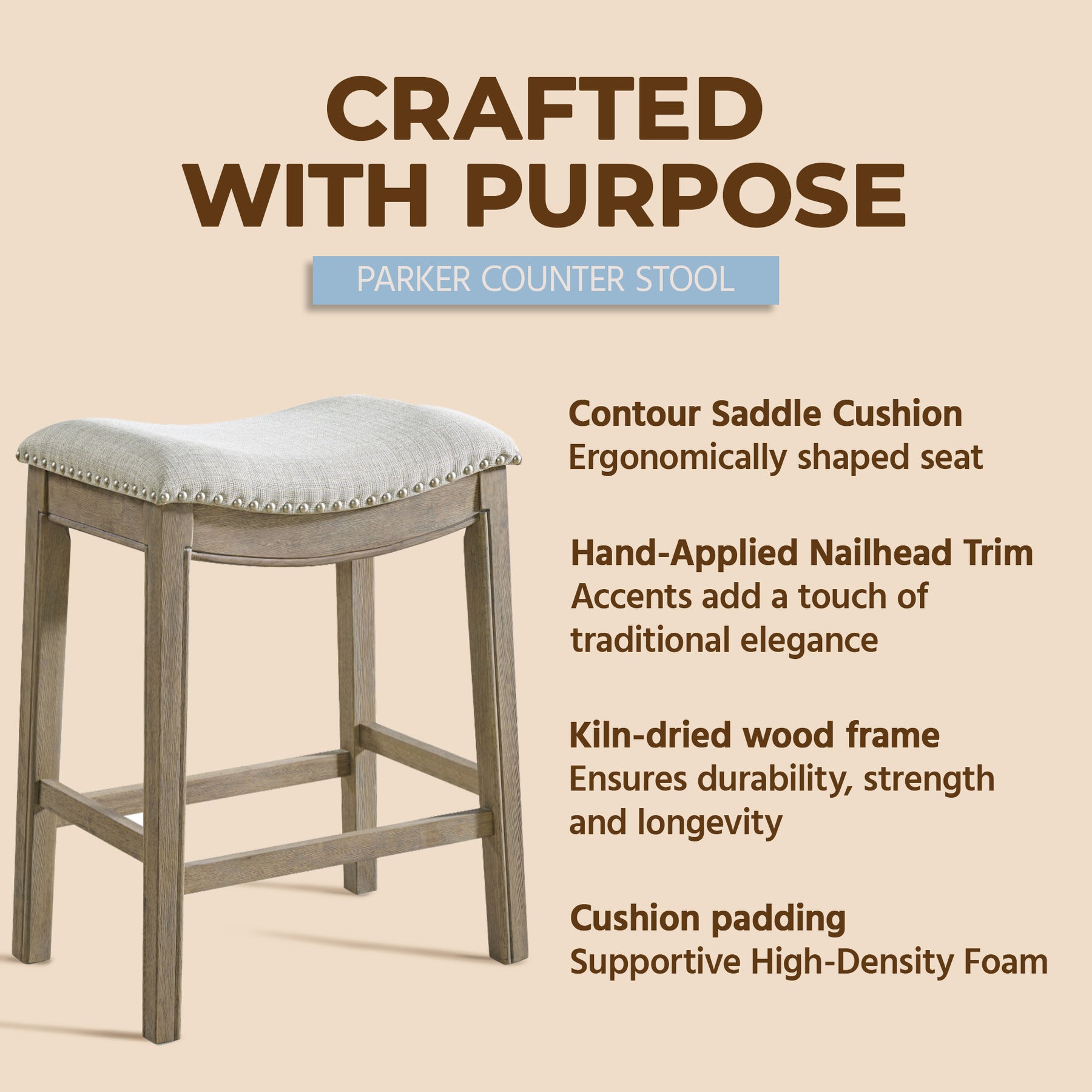 - Take your interior aesthetic to the next level with help from our Parker Stool with a classic style and hand-craft design to stand the test of time