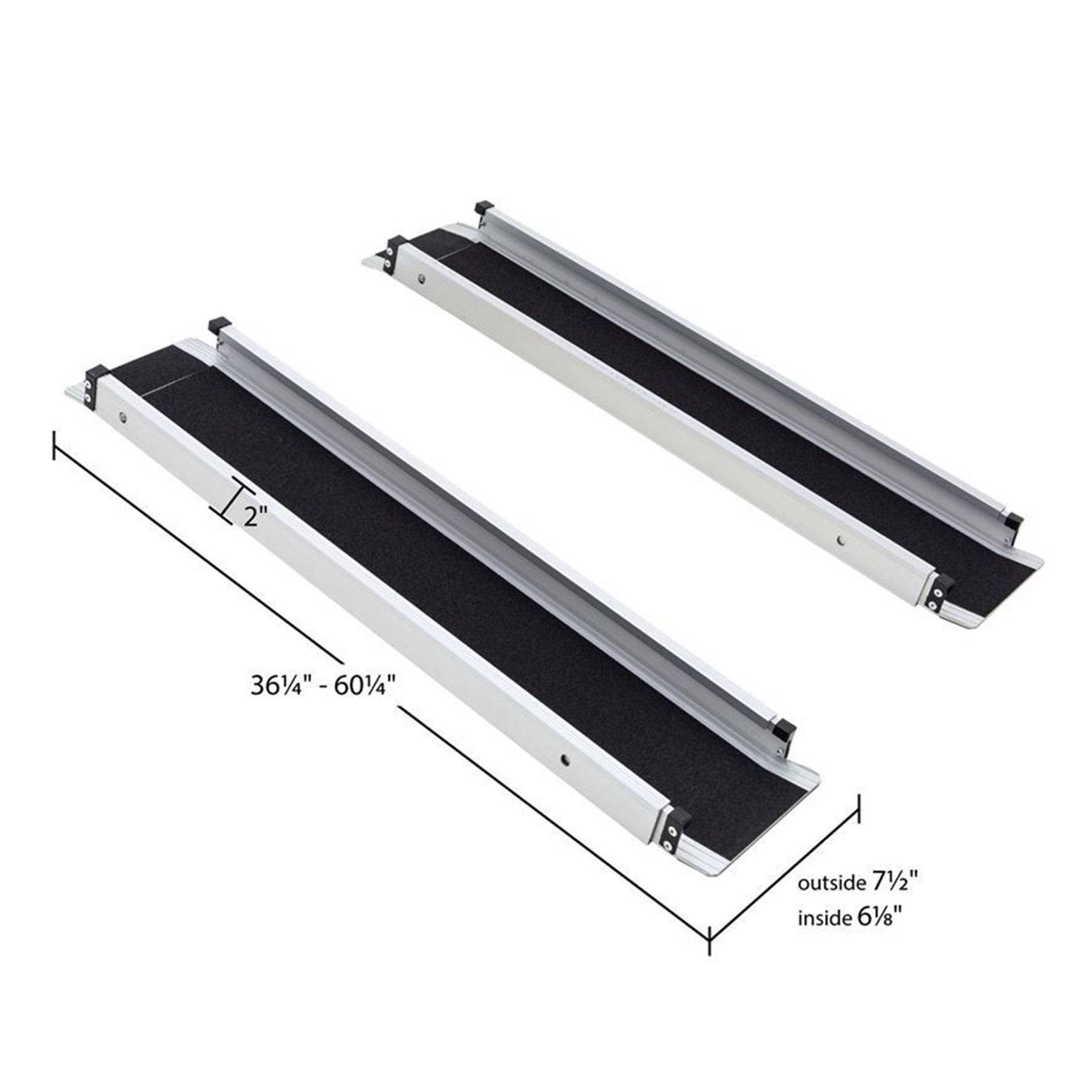 - Adjustable wheelchair tracks telescope from 3 to 5 feet to fit various heights, perfect for short rises like steps, porches, and curbs