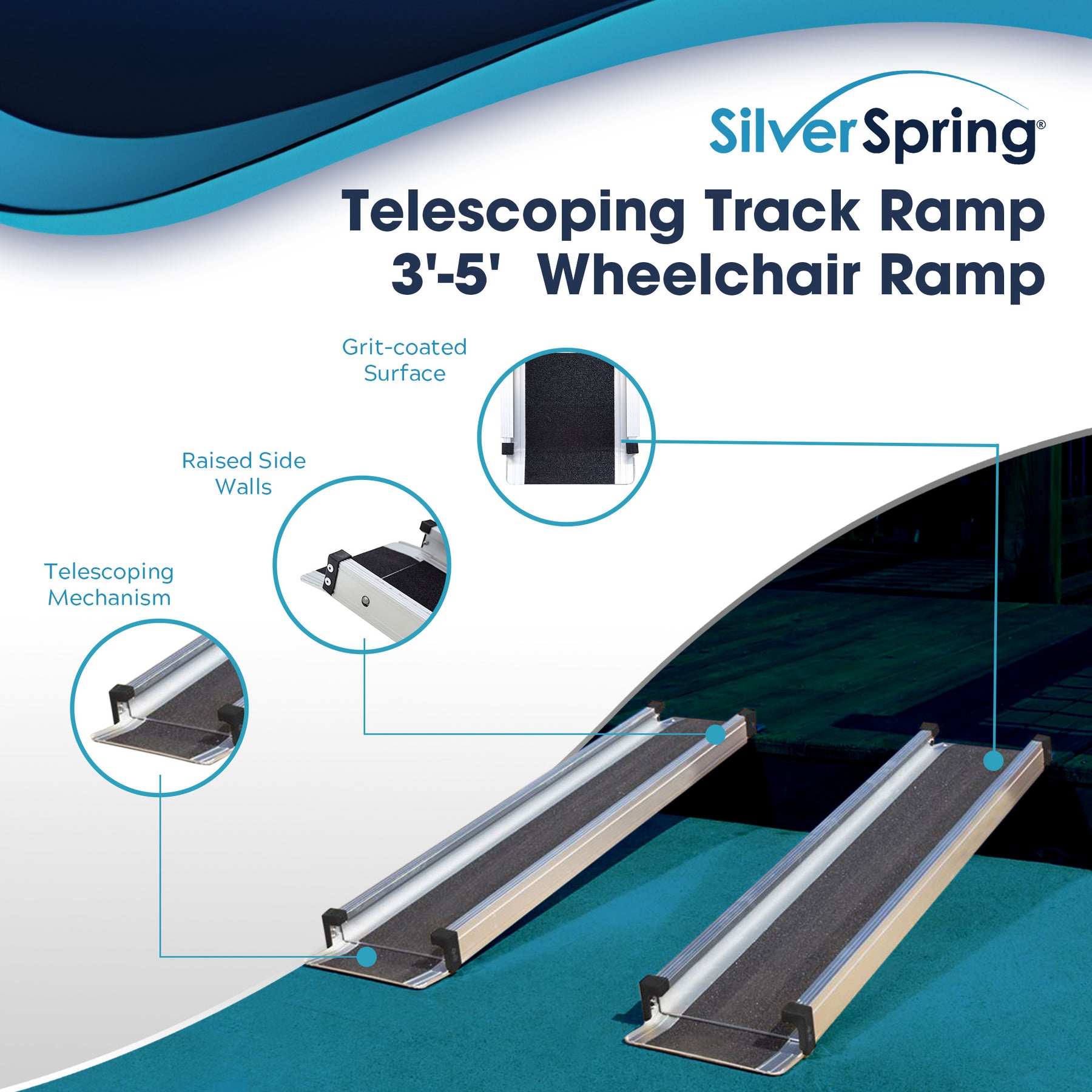 Silver Spring Telescoping Track Ramp, 3'-5' Portable Adjustable Wheelchair Ramp