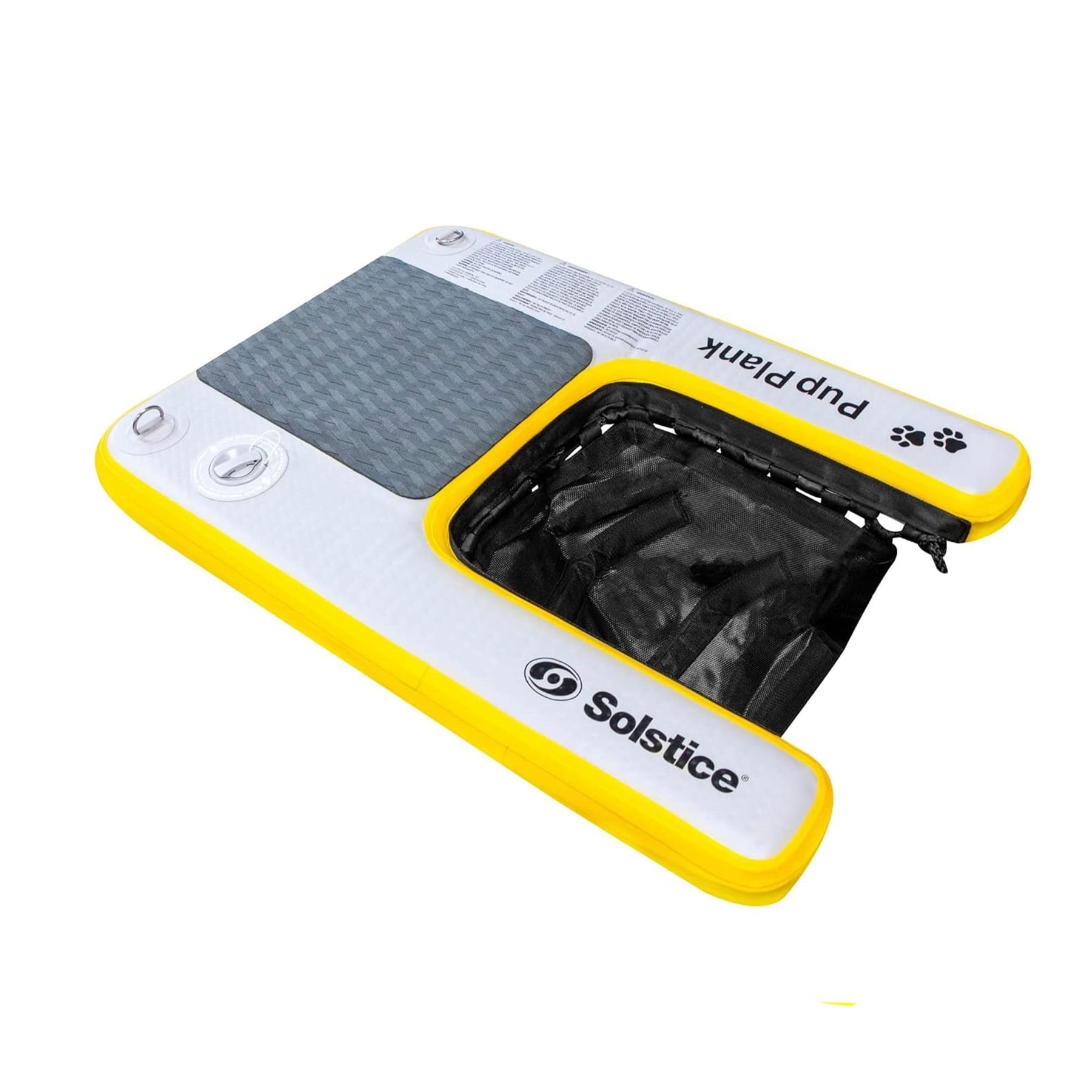 Watch your furry friend make a splash with the Inflatable Pup Plank Mini from Solstice.