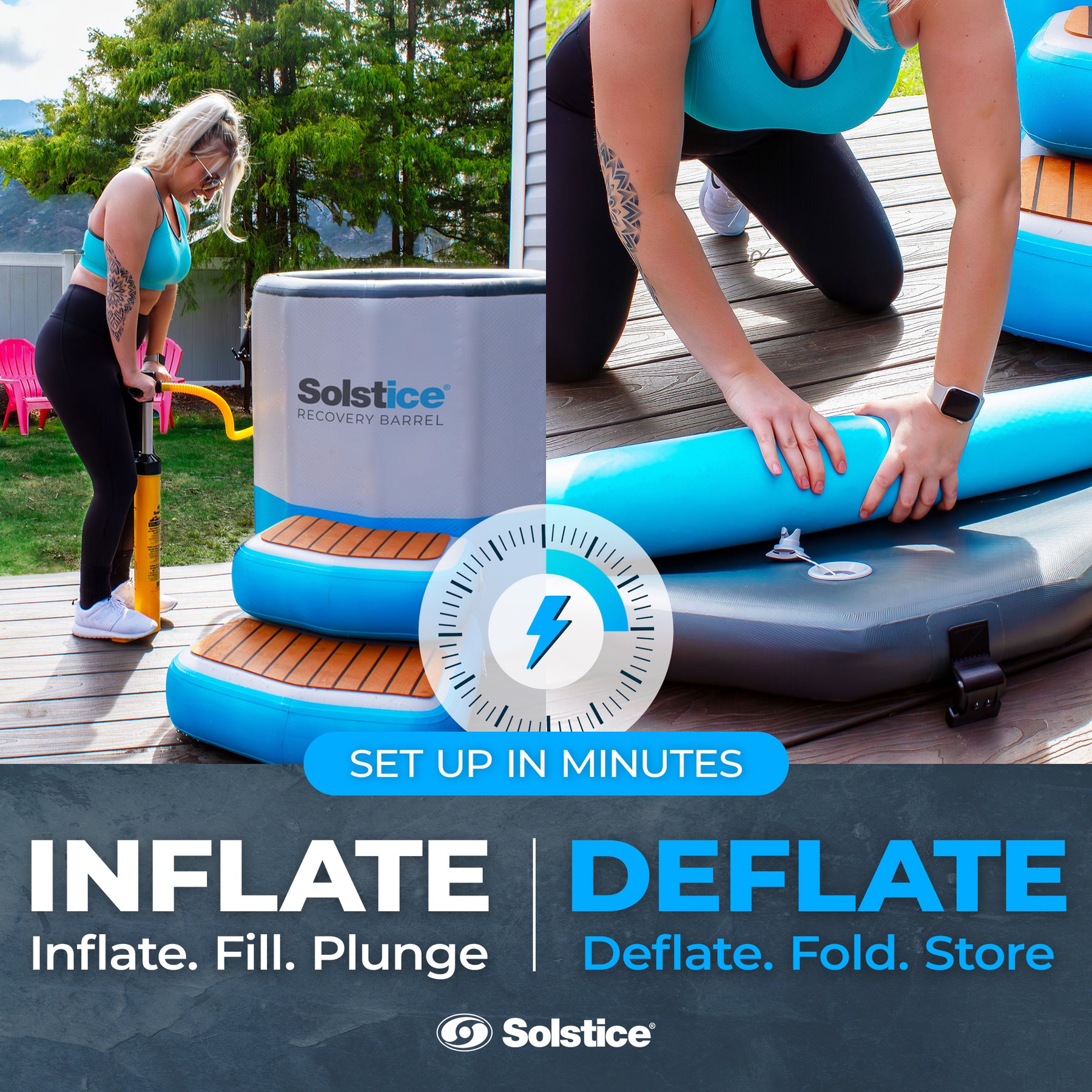 • Easily inflate your plunge and insulation cover within 15 minutes with its included pump, simply fill it with water and ice to get started