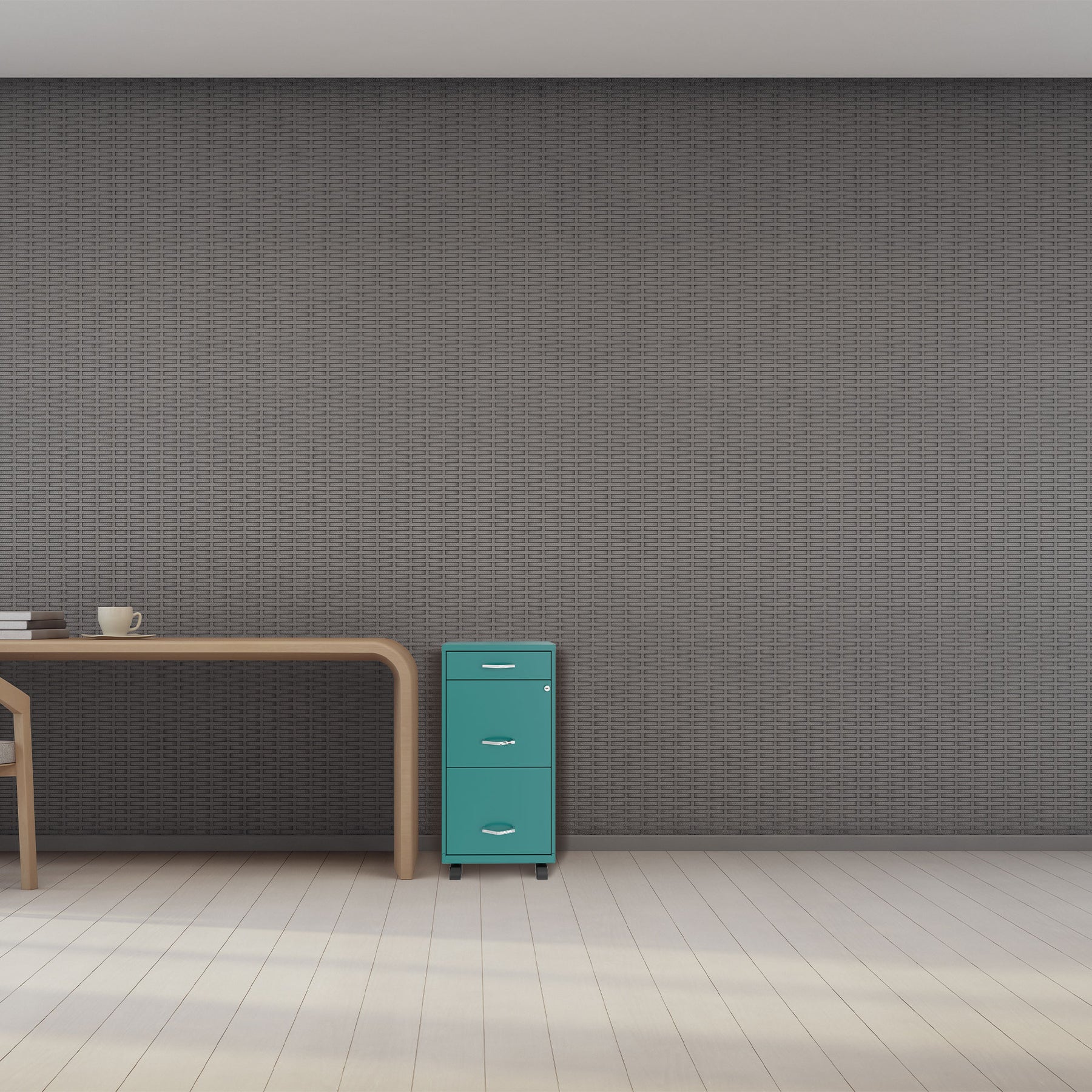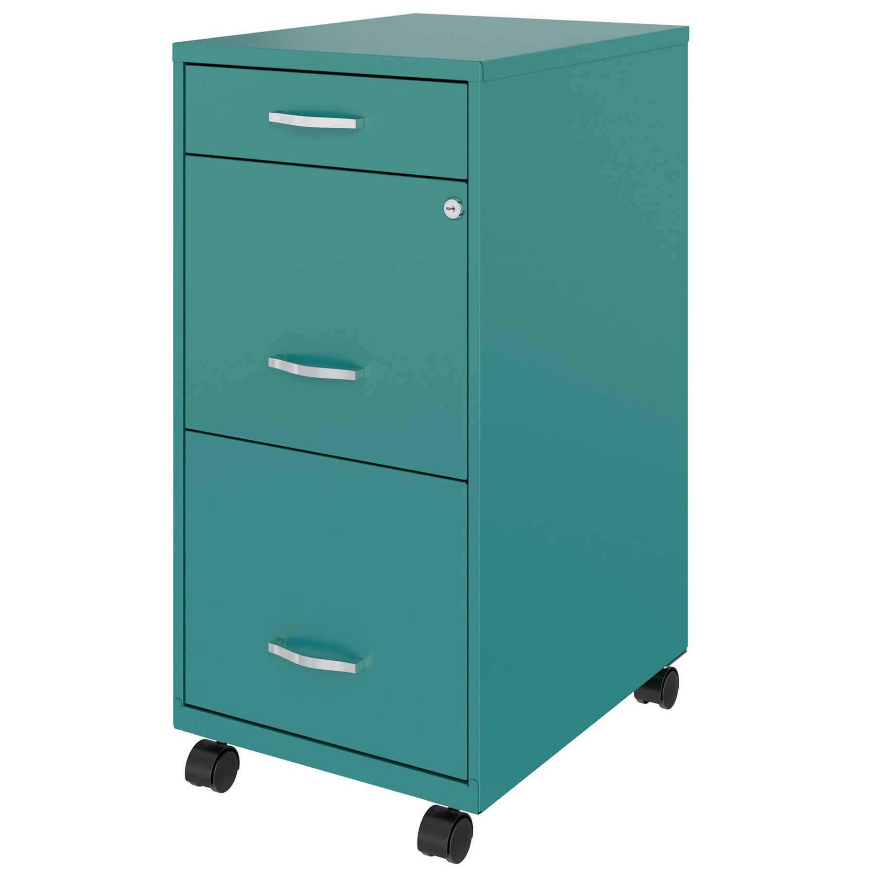 Space Solutions 18 Inch Wide 3 Drawer Mobile Cabinet for Office, Teal (Open Box)