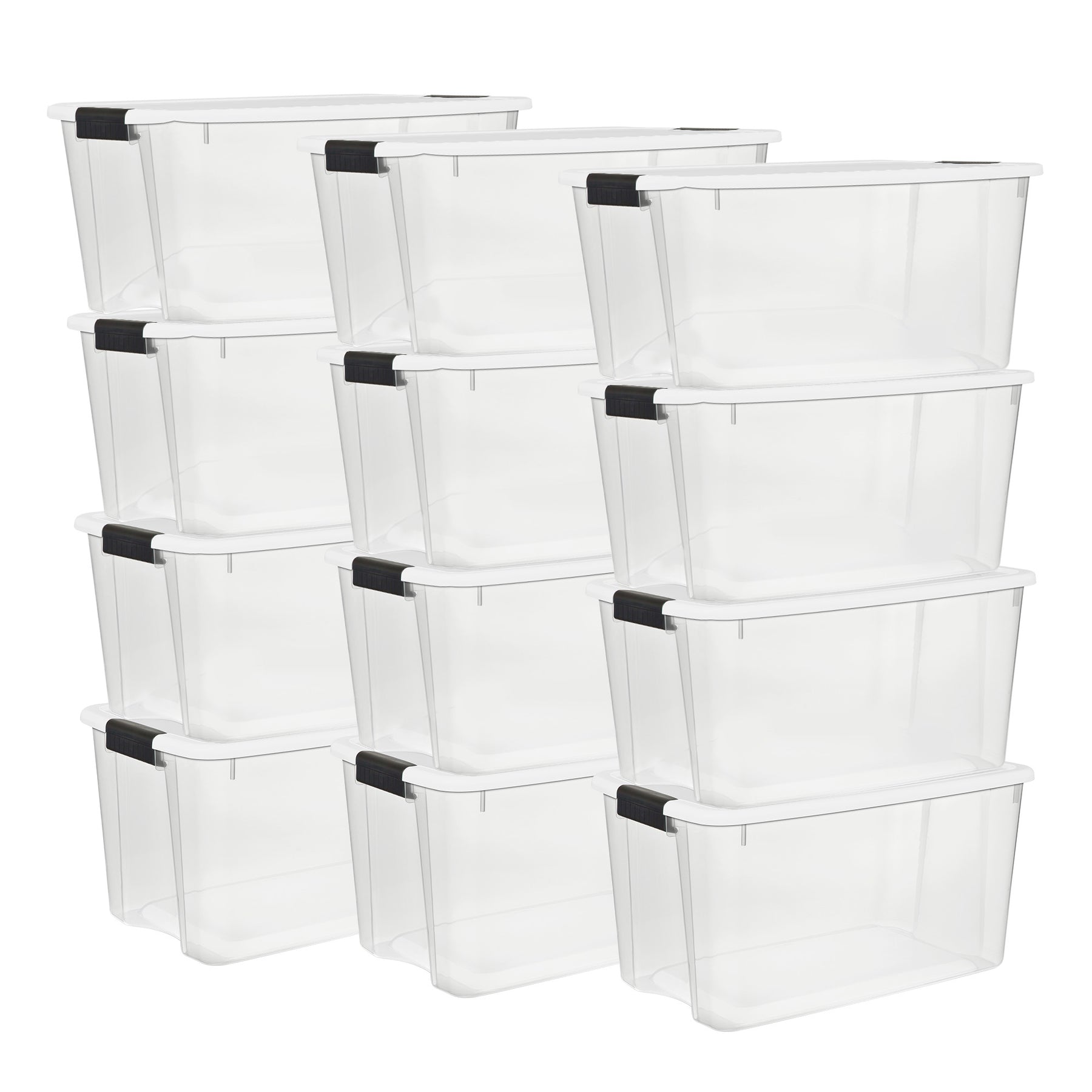 Sterilite 70 Qt Clear Plastic Stackable Storage Bin w/ White Latch Lid, 12 Pack