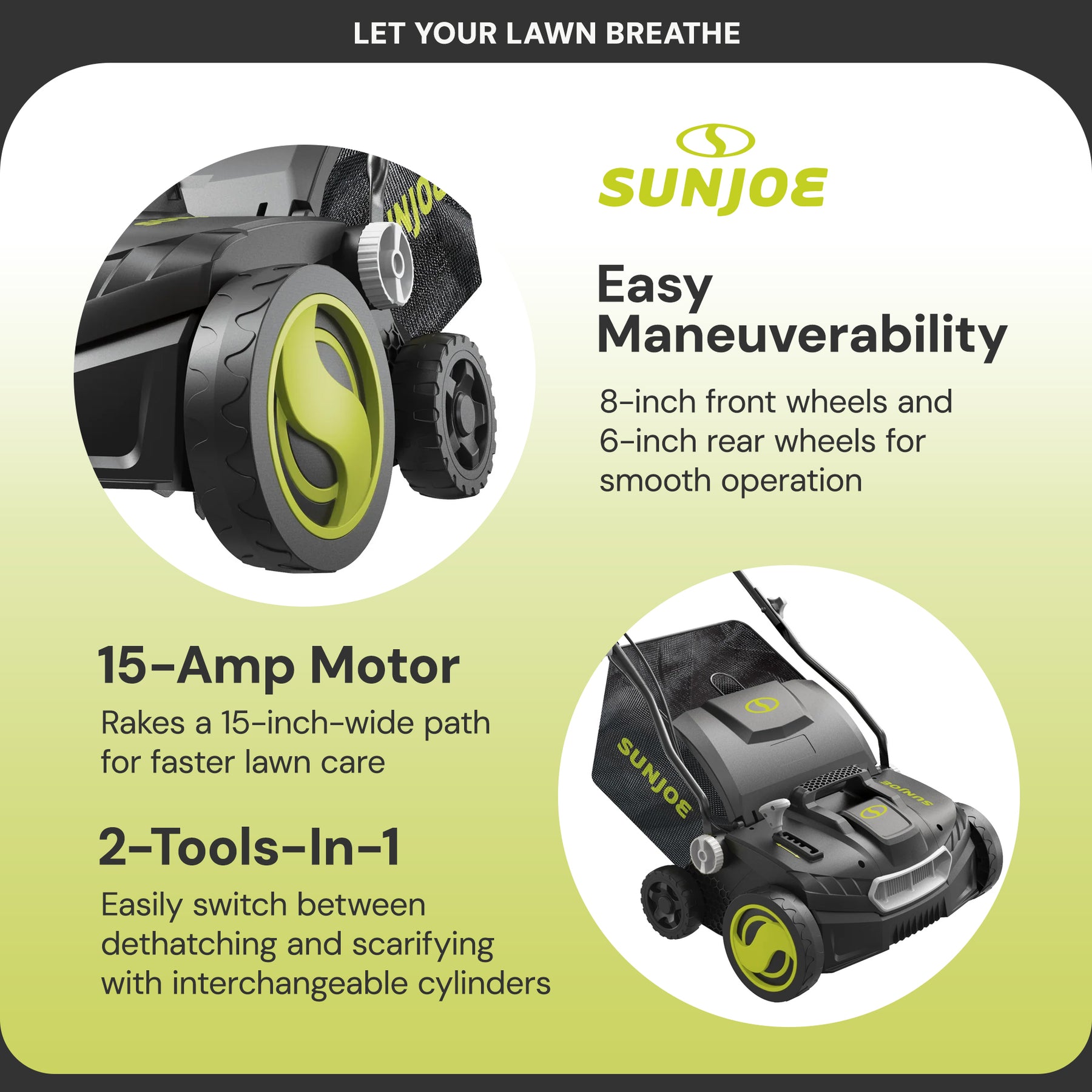 Sun Joe 15" Corded Electric Dethatcher Scarifier w/13.2gal Bag 15 Amp(For Parts)