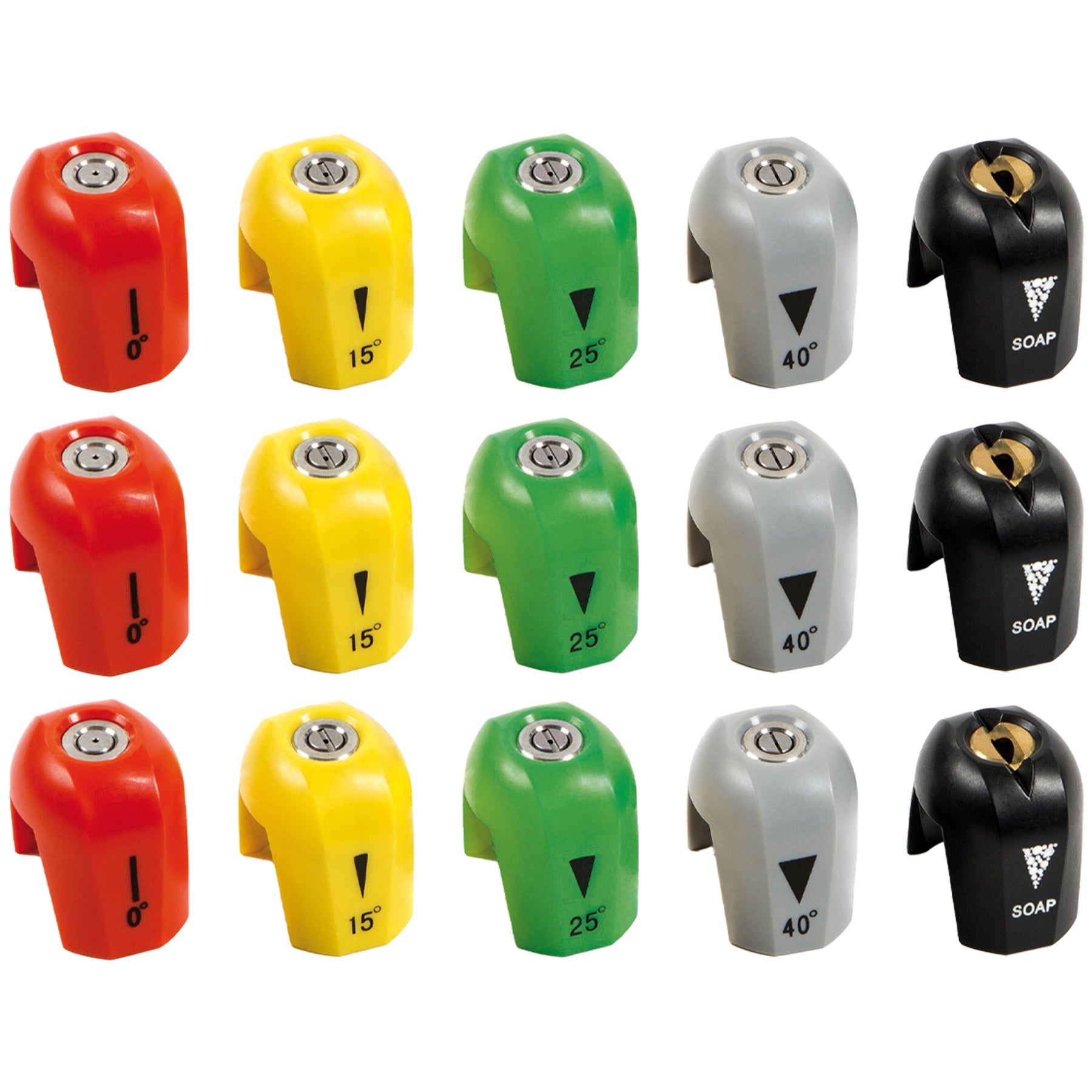 - 3 sets of 5 quick connect pressure washer spray tip designed to act as a replacement for worn out tips
