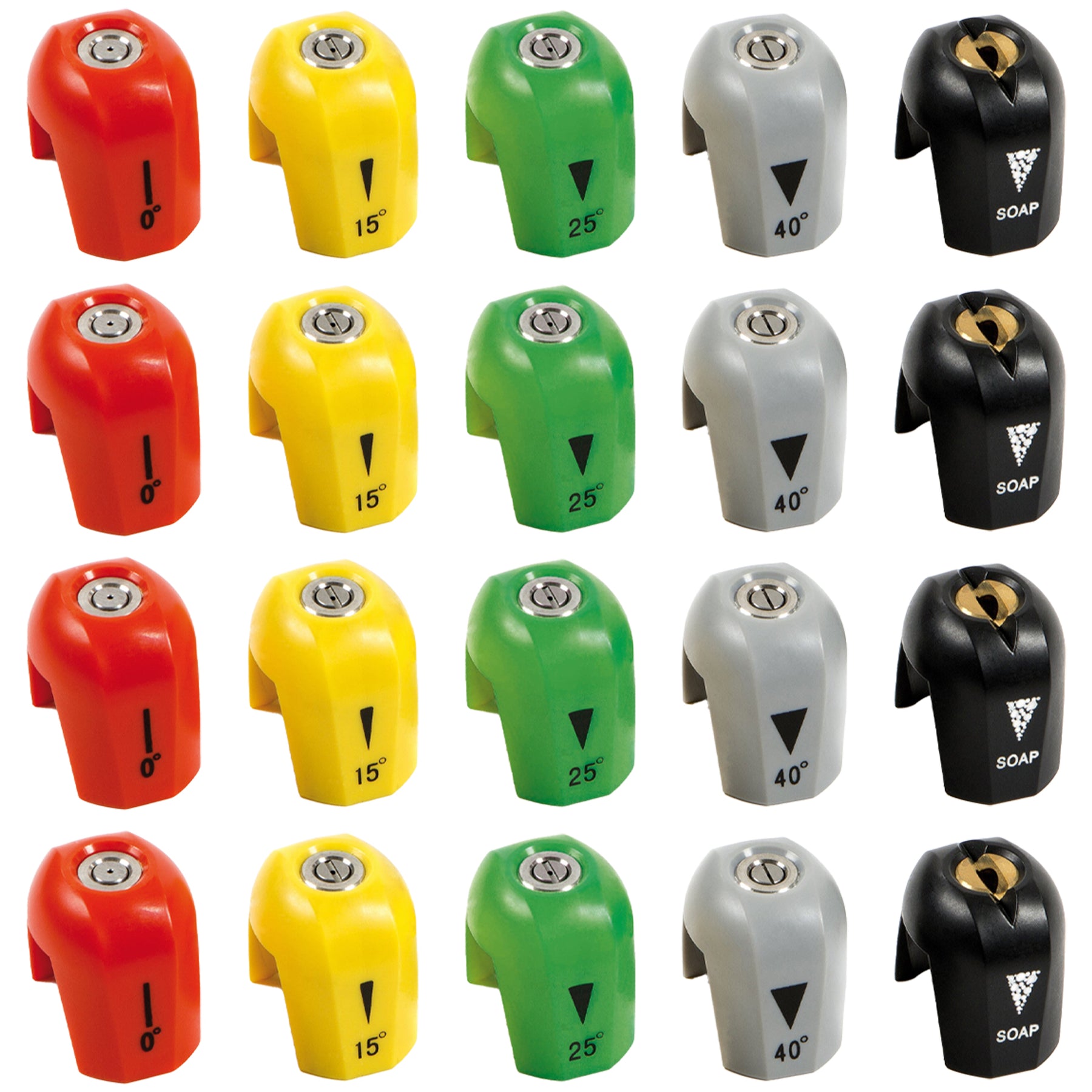 Each pack includes three full sets of five pressure washer spray tips, totaling 15 tips in all. The color-coded nozzles offer 0°, 15°, 25°, 40° spray angles, and a dedicated soap tip, making it easy to switch between a powerful pinpoint stream for heavy-duty cleaning or a wide fan spray for lighter tasks. Clean everything from driveways and decks to patio furniture, vehicles, siding, and shutters — all with the right pressure for the surface.