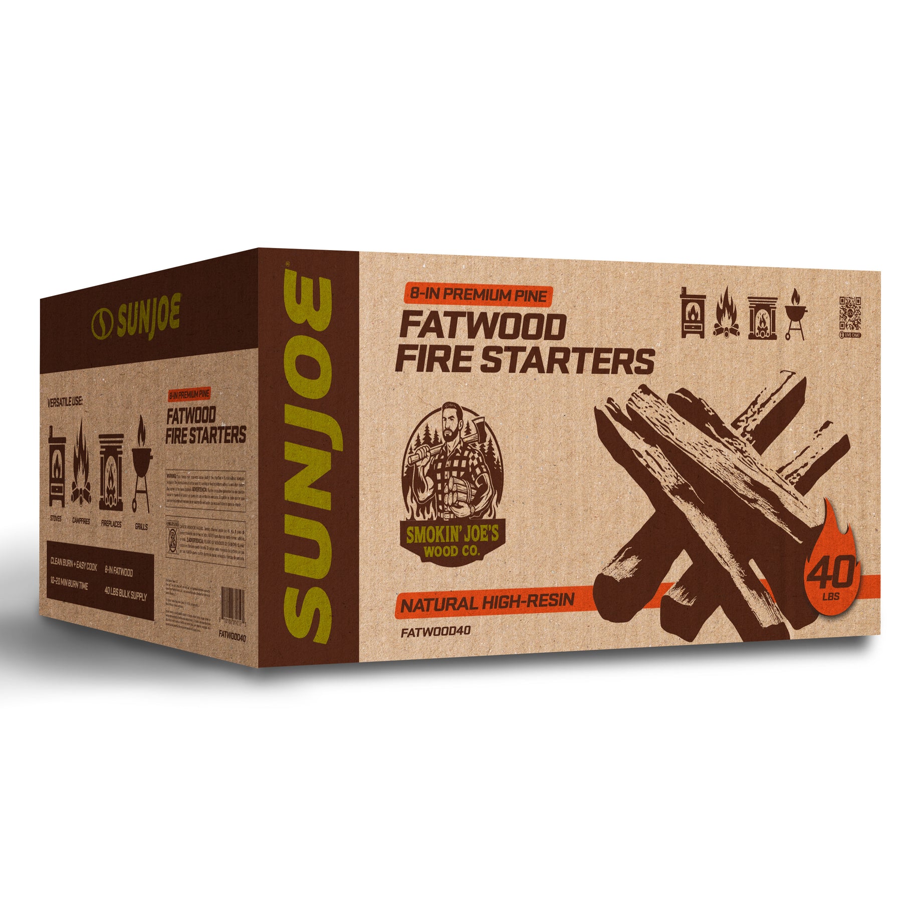 From the trusted Sun Joe brand, known for innovative, eco-friendly outdoor solutions, Fatwood is a safe, sustainable alternative to chemical starters. Clean burning and simple to use, it helps you fire up your next gathering faster, easier, and more naturally.