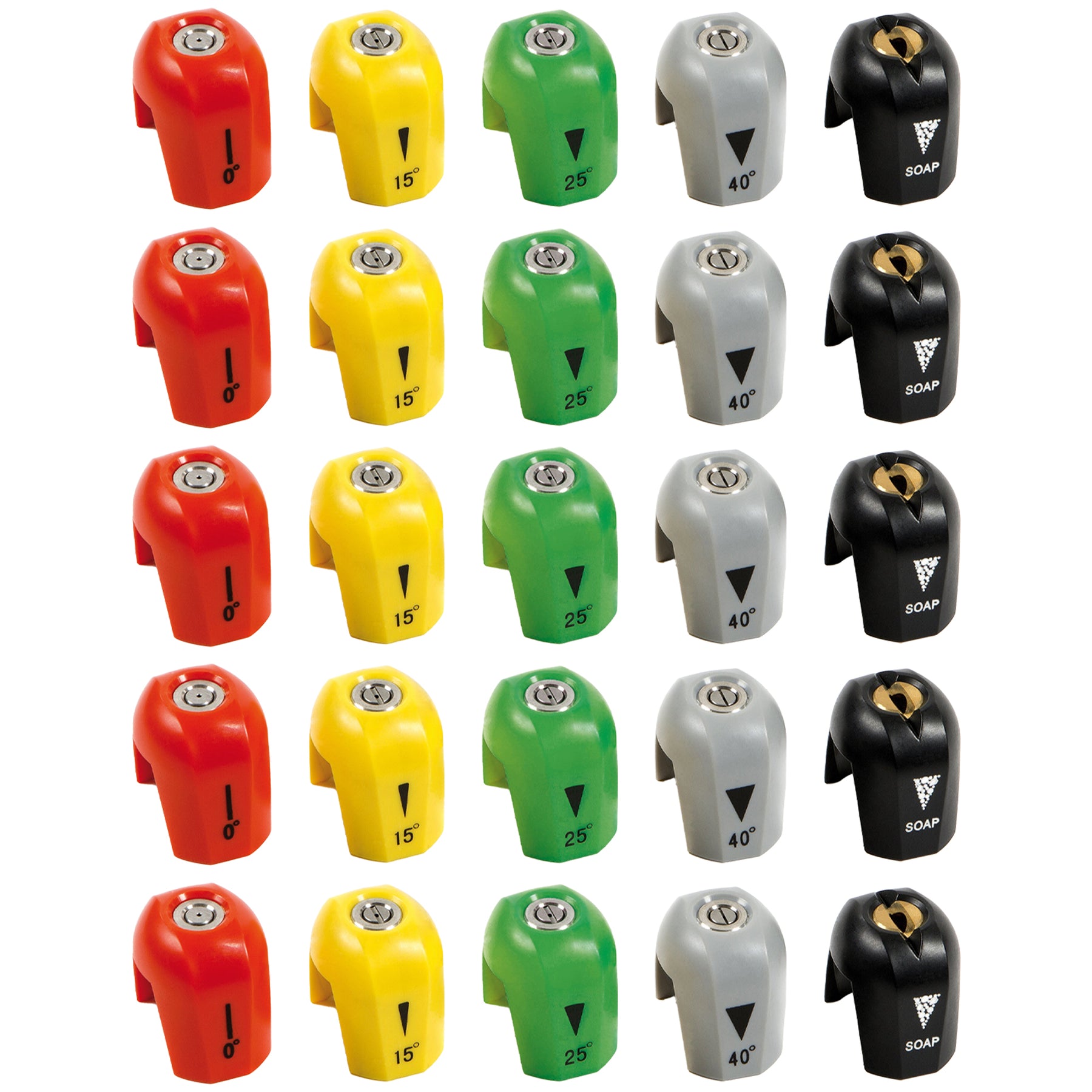 • 5 sets of 5 quick connect pressure washer spray tip designed to act as a replacement for worn out tips