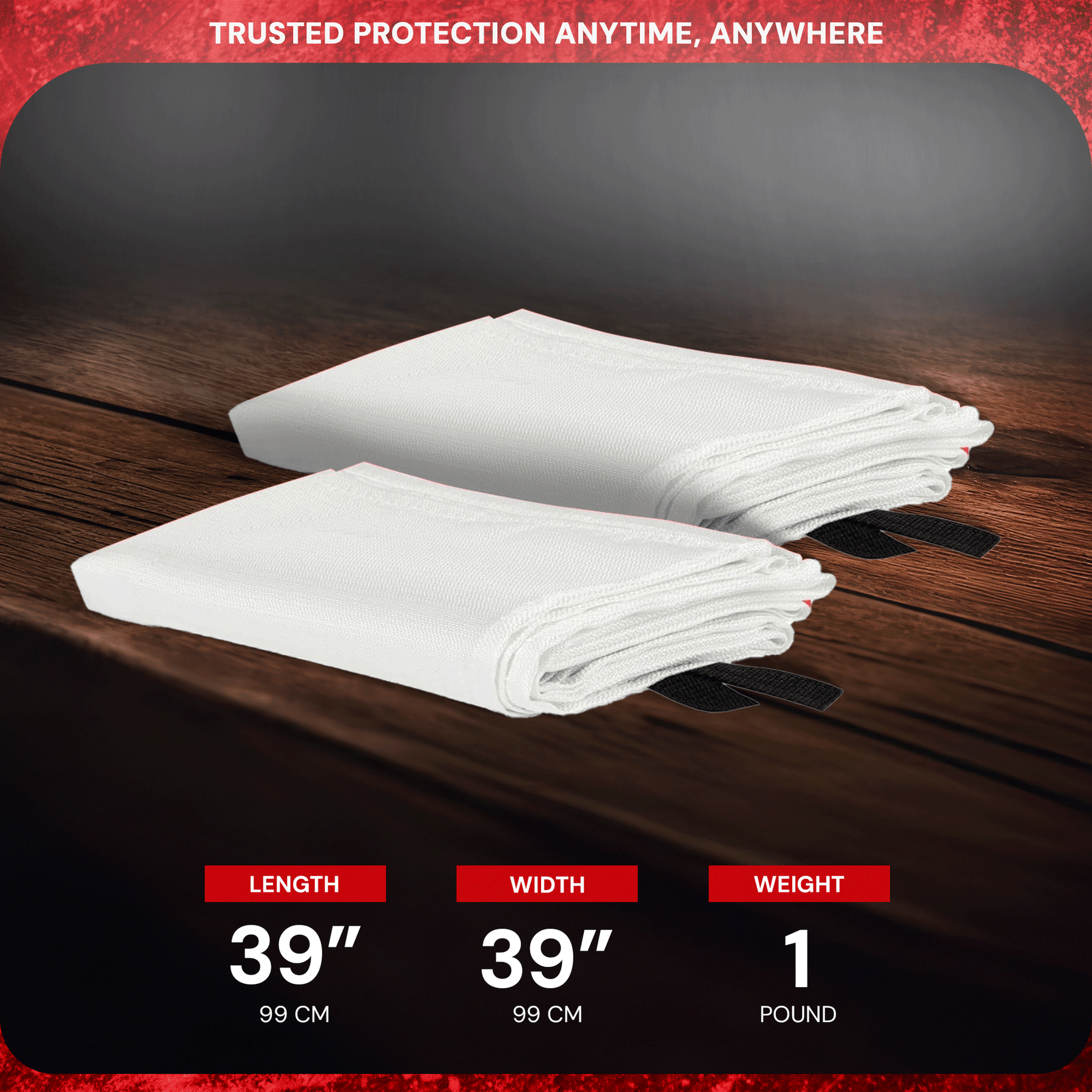 - Fire blanket dimensions (L x W): 40 x 40 inches