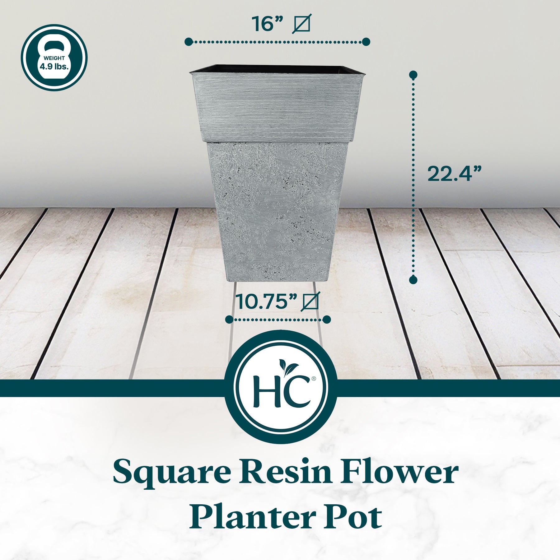 Decorate the exterior of your home and bring your front/backyard to life with the help of The HC Companies Avino 16-Inch Square Resin Flower Planter Pot.