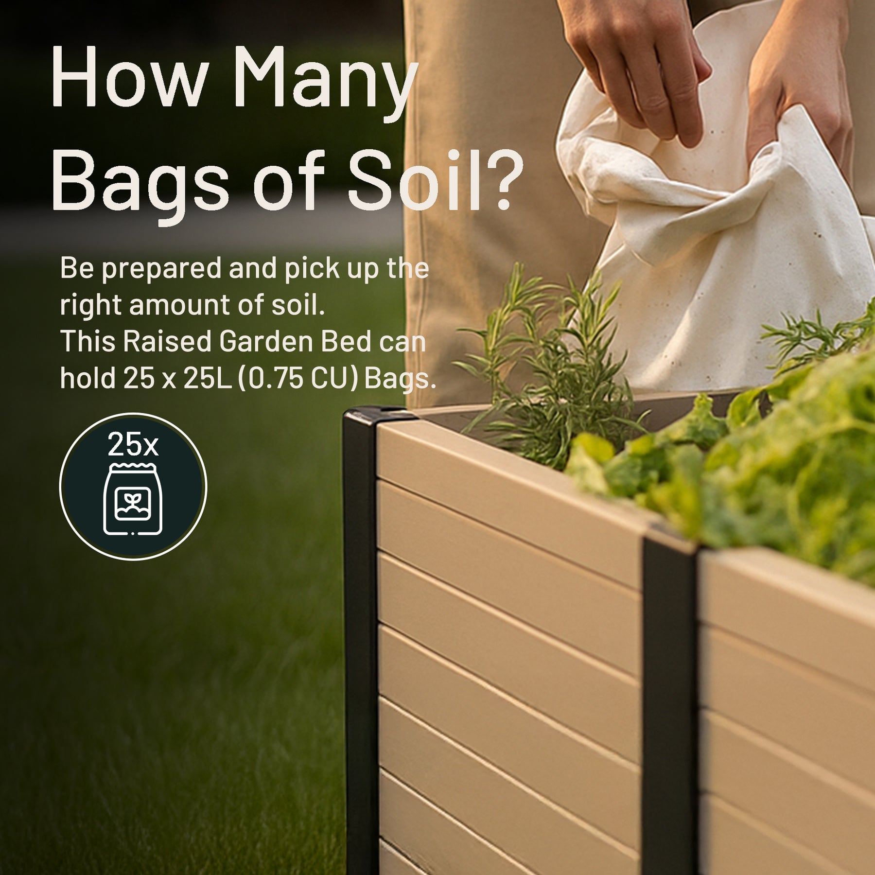 • Holds up to 620 liters (160 gallons) of soil, providing ample room for deep-rooted plant growth