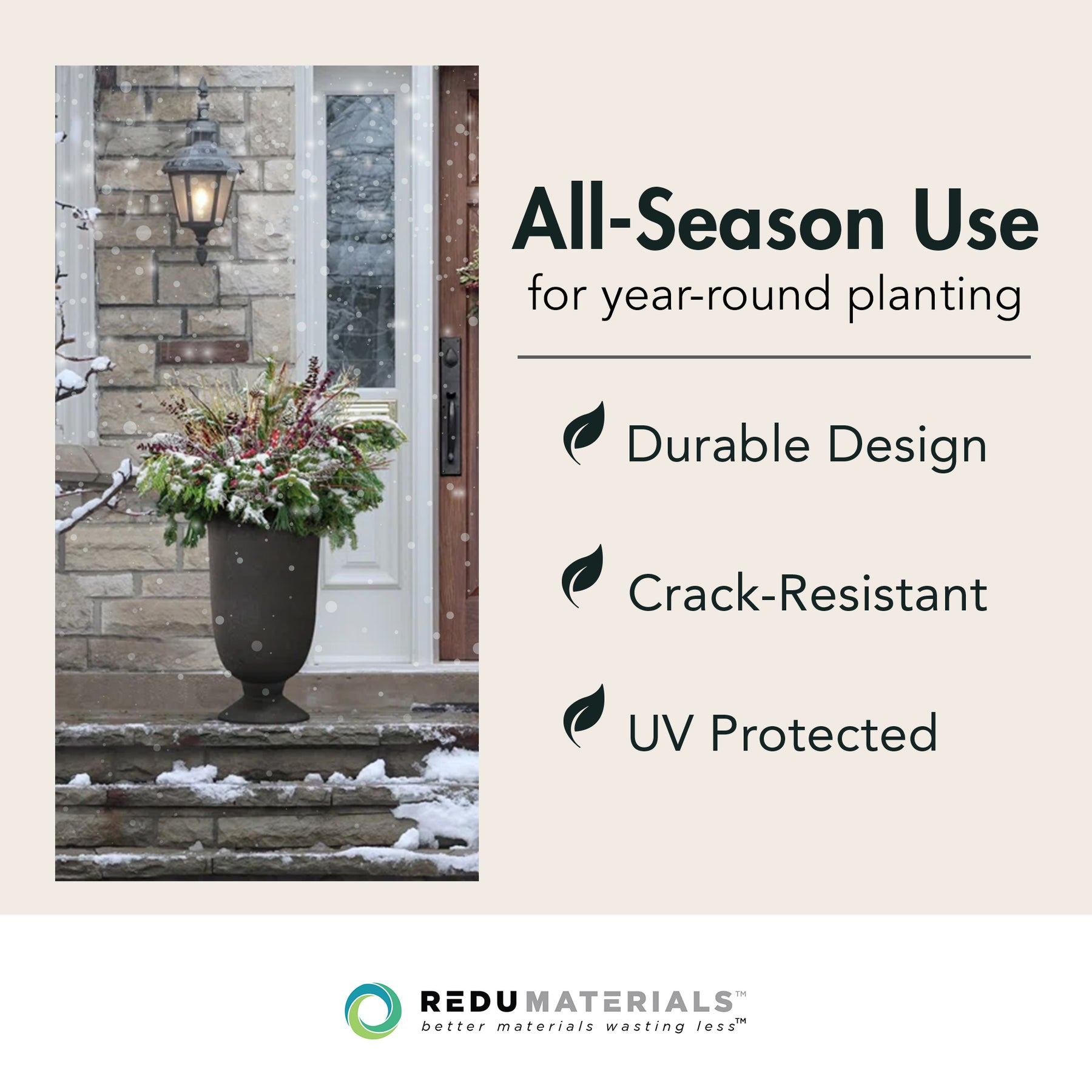 • Made from eco-friendly recycled material, this planter is crack-proof and recommended for all-season use
