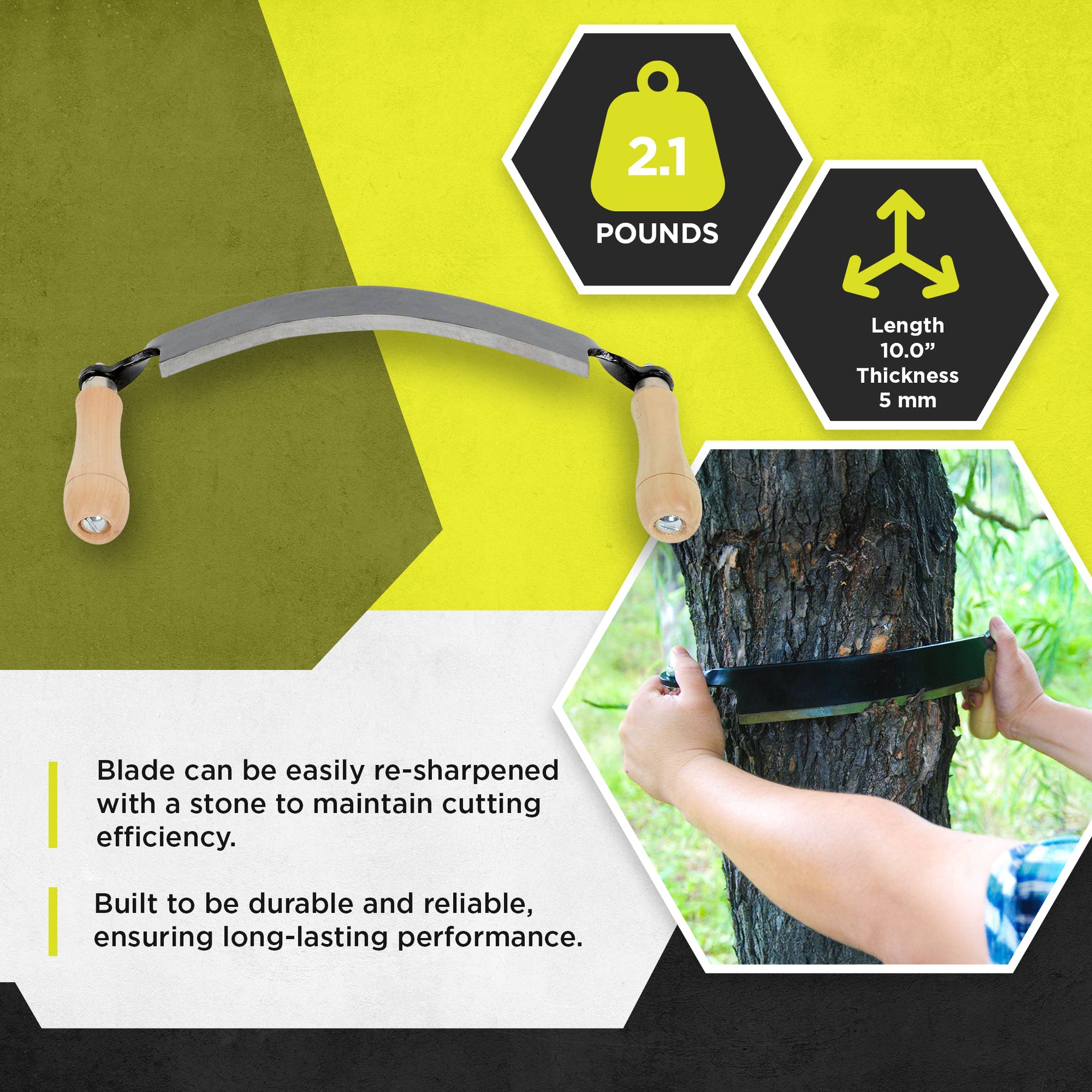 Its 10-inch ultra-sharp blade shaves bark and wood with very little effort. Made of heavy-duty steel, this draw shave is durable and reliable. To keep the draw shave ready for action, simply re-sharpen the blade with a stone as needed. The comfortable wood handles provide you with a secure hold and the included blade protector keeps the blade sharp and will also help to keep you protected.